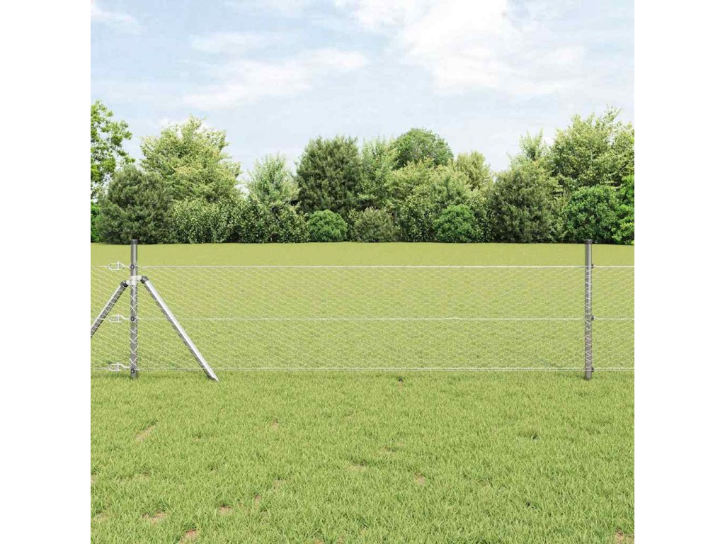 Plotový sloupek. Stříbrná 10 x 0,8 m (25 mm síť) Ocel [3352915]