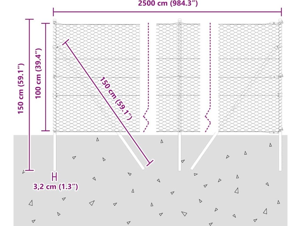 Plotový sloupek. Stříbrná 25 x 1 m (36 mm pletivo) Ocel [3352956]