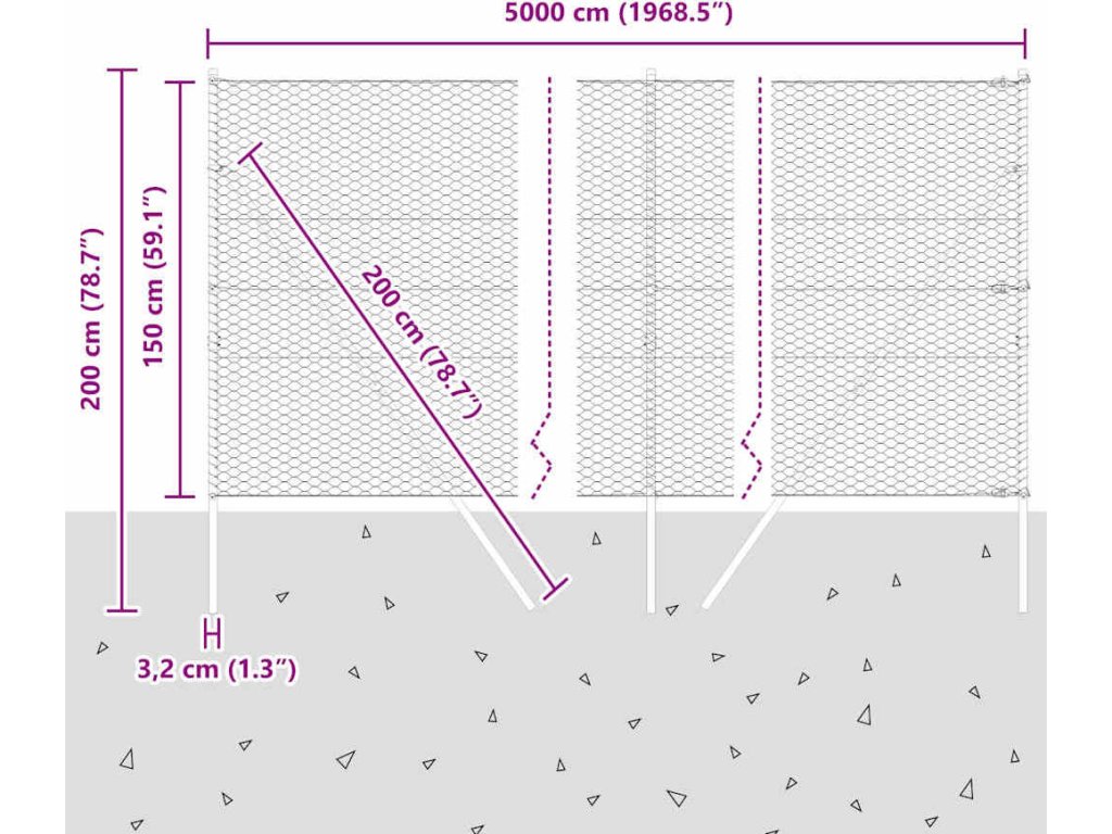 Plotový sloupek. Stříbrná 50 x 1,5 m (36 mm síť) Ocel [3353004]