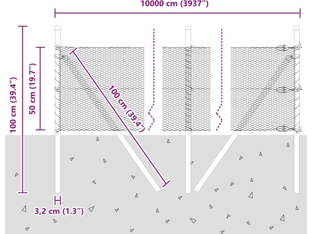 Plotový sloupek. Stříbrná 100 x 0,5 m (13 mm síť) Ocel [3353014]