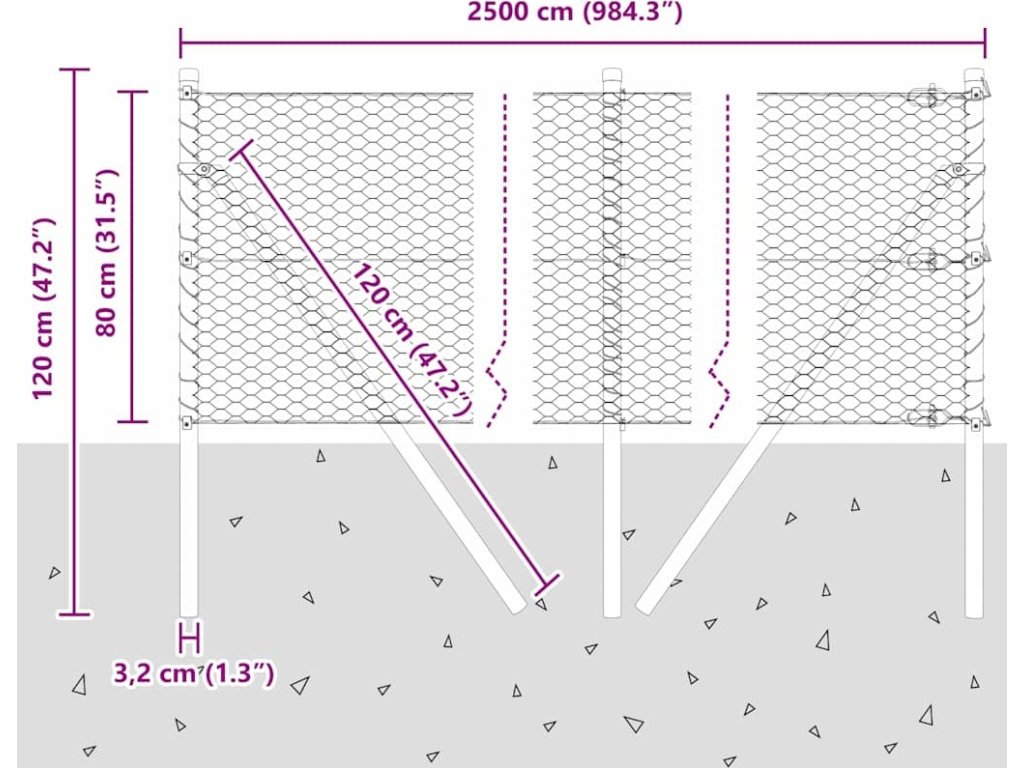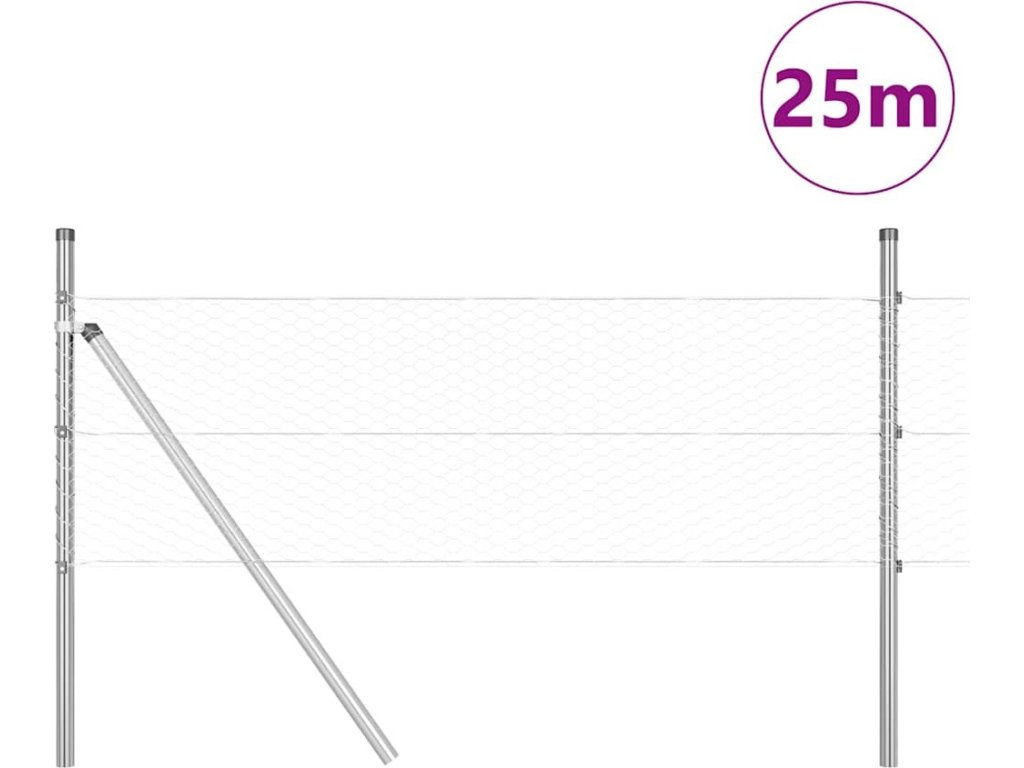 Plotový sloupek. Stříbrná 25 x 0,8 m (25 mm síť) Ocel [3352951]