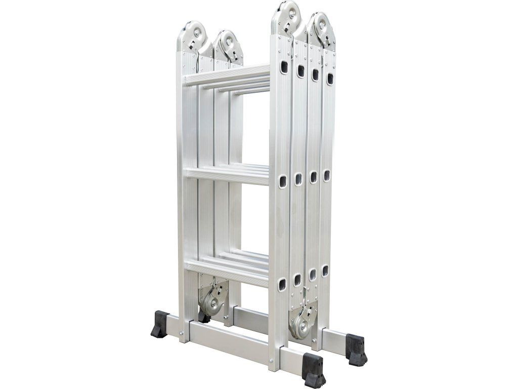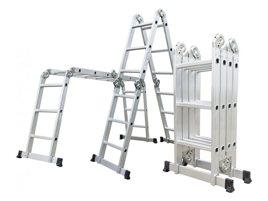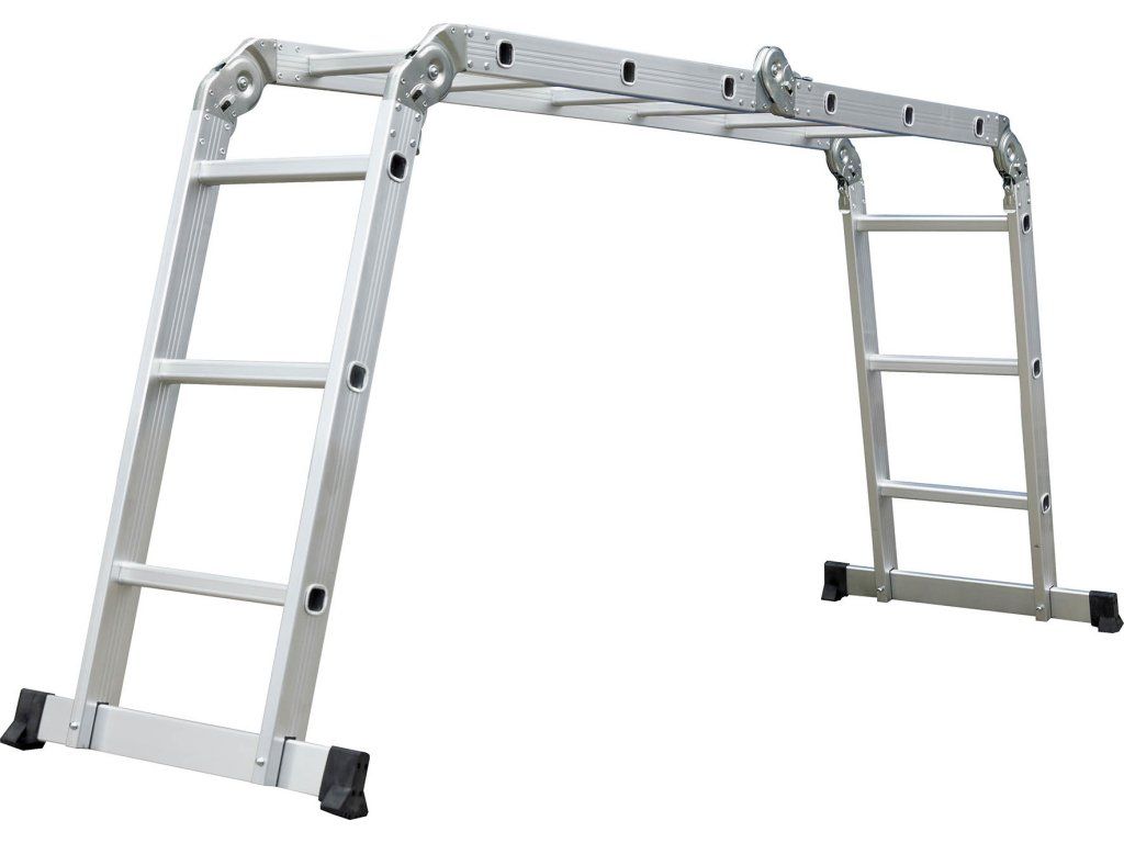 Hliníkové štafle můžete využít jednak jako dlouhý žebřík v délce až 3,7 m. Další variantou je možnost sestavit štafle jako přenosné lešení. Díky konstrukci s klouby lze štafle snadno umístit přes hřeben střechy.