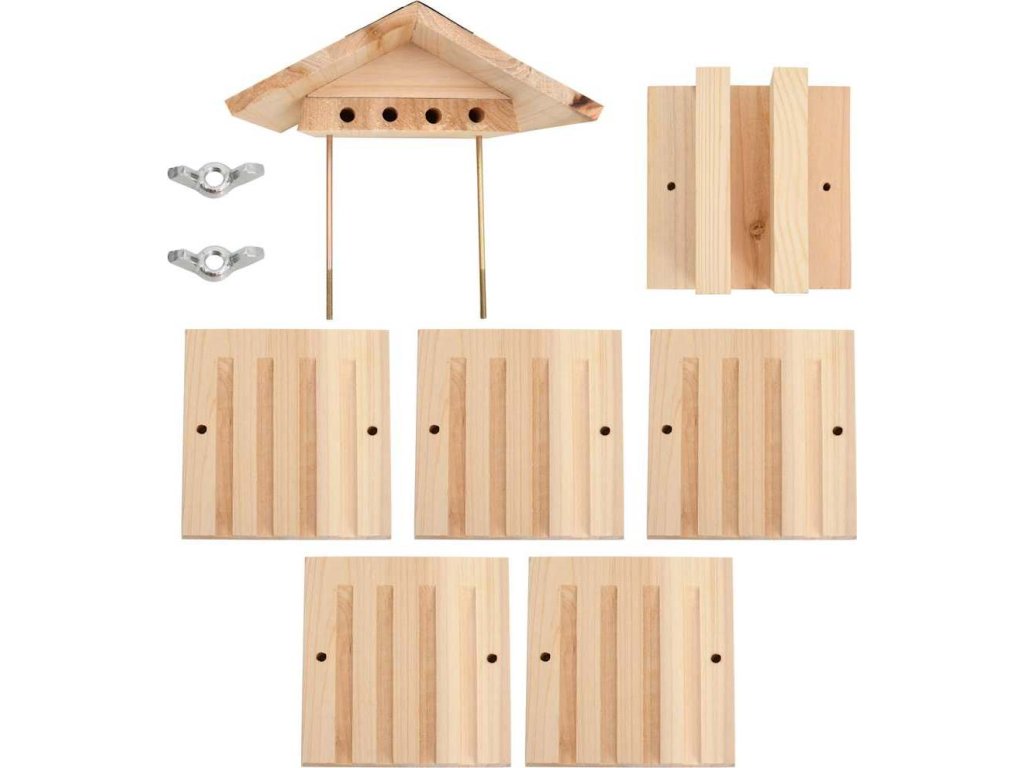 Otvory tohoto hmyzího hotelu jsou přesně vyřezané tak, aby přilákaly včely samotářky, jako je zednice rudá, včela čalounicovitá a další druhy samotářek. Včelí hnízdo tvoří na sebe naskládané desky z odolného jedlového dřeva, které je možné sejmout pro kontrolu a čištění.