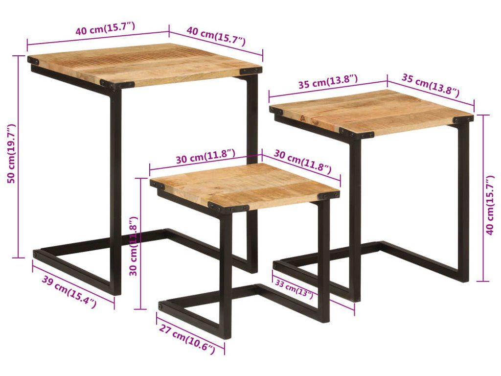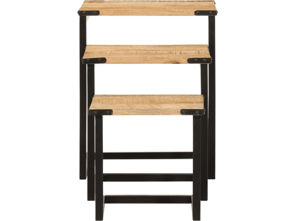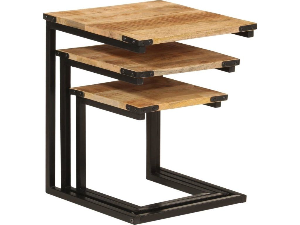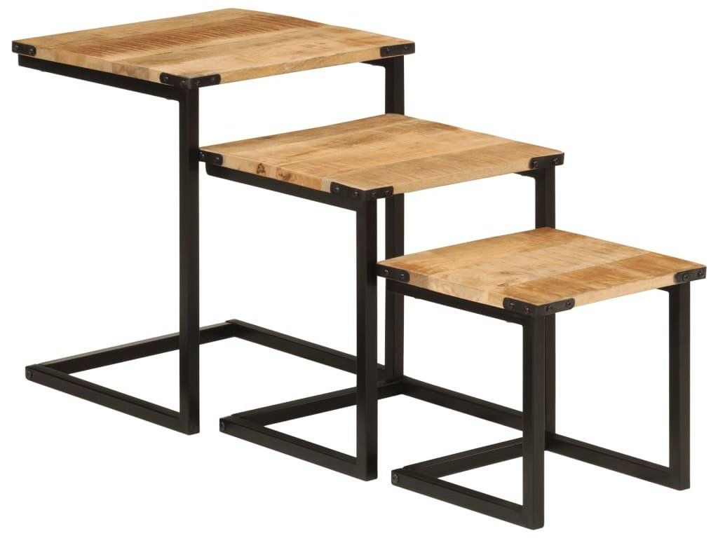 Hnízdové konferenční stolky 3 ks masivní mangovník a železo [358561]