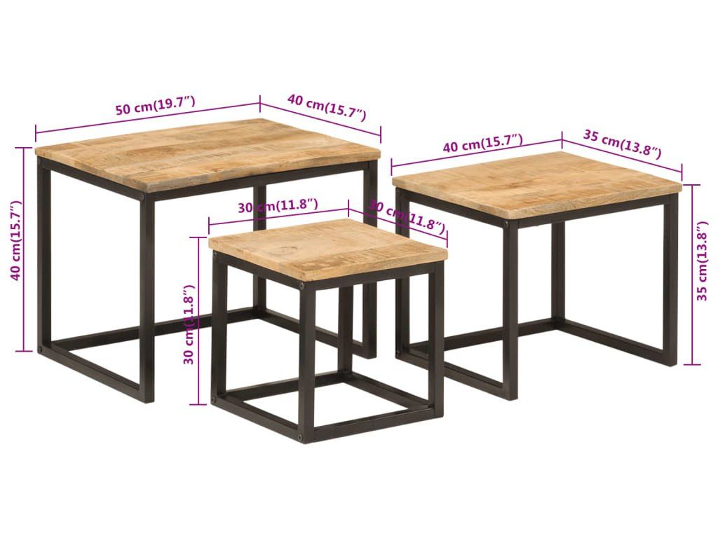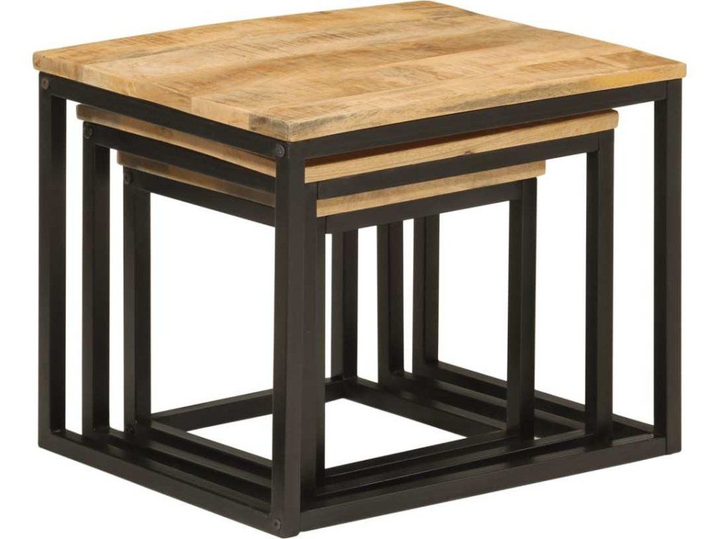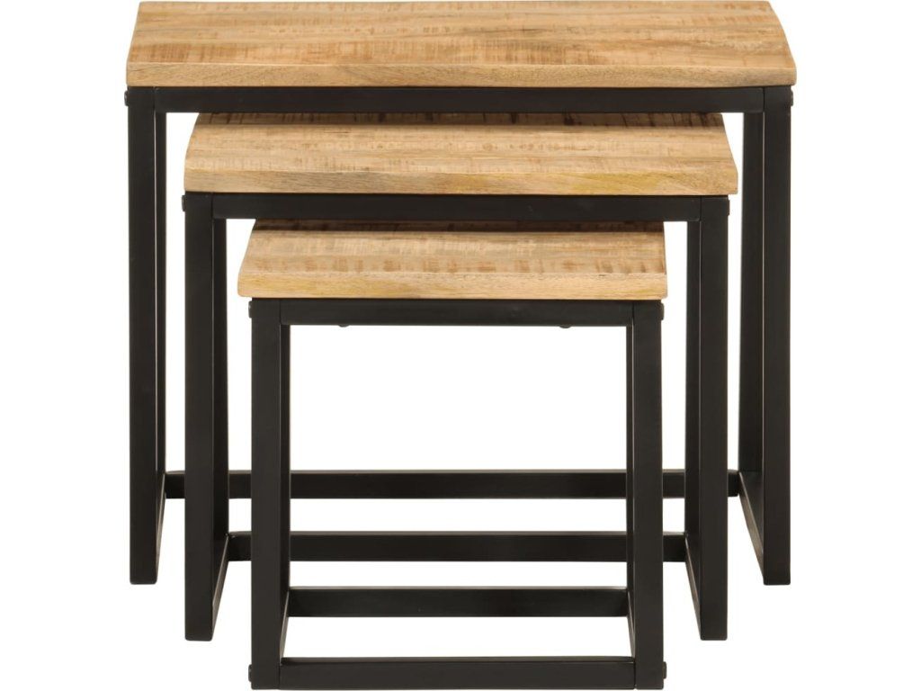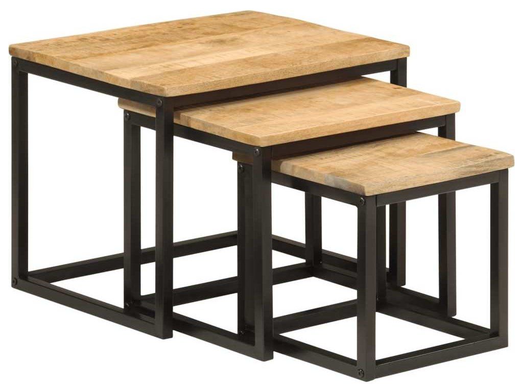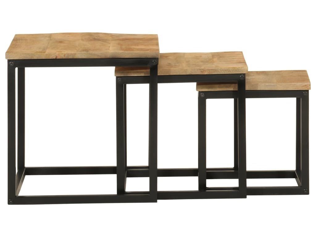 Hnízdové konferenční stolky 3 ks masivní mangovník a železo [358569]