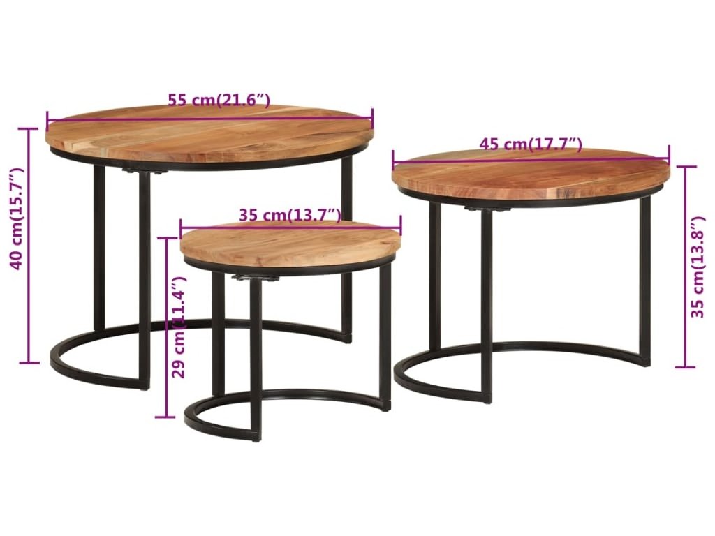 Hnízdové stolky 3 ks masivní akáciové dřevo [353900]