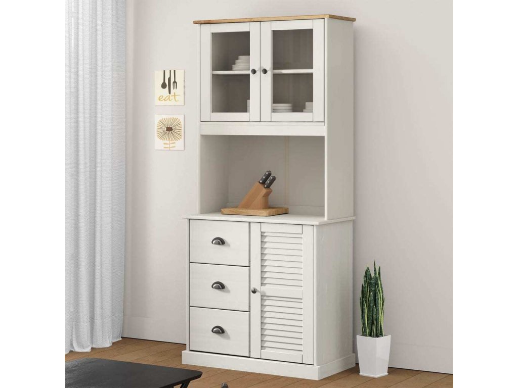 - Dostatek úložného prostoru: Díky policím a skleněným dvířkům díl zajišťuje přehledné a uspořádané vystavení nádobí, šálků a misek.