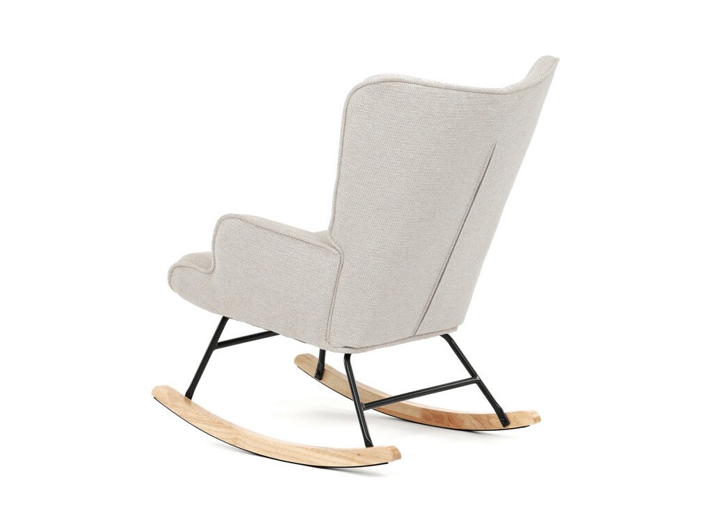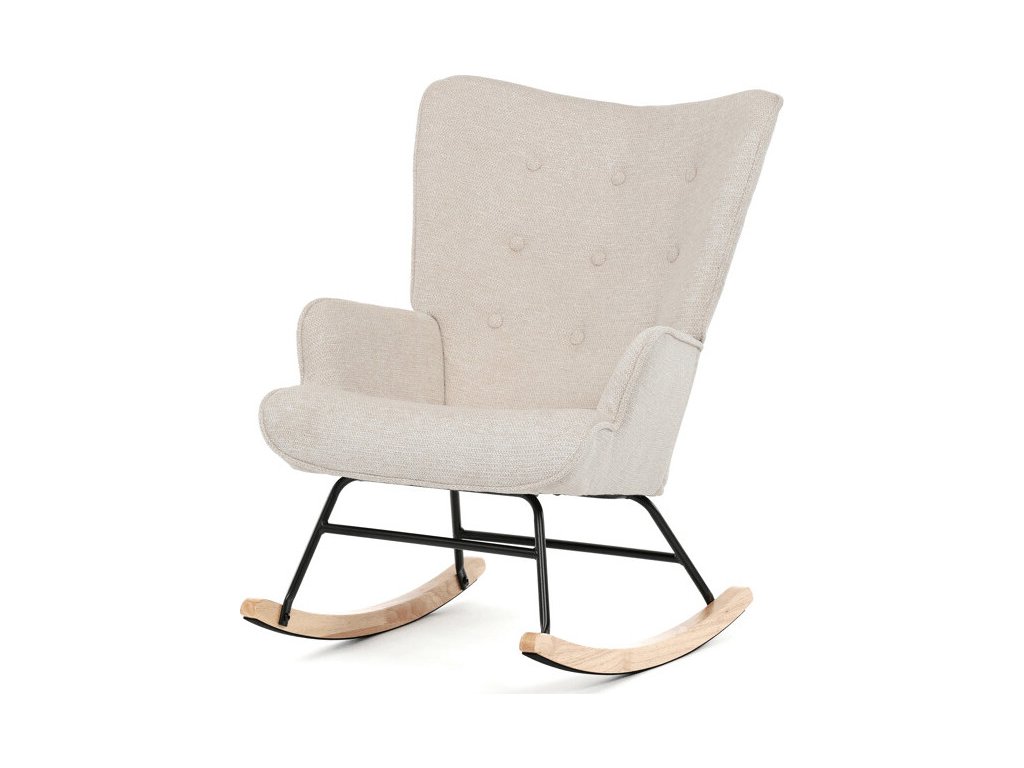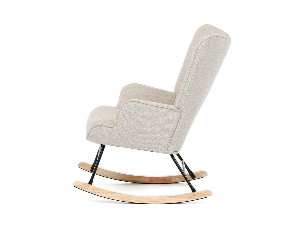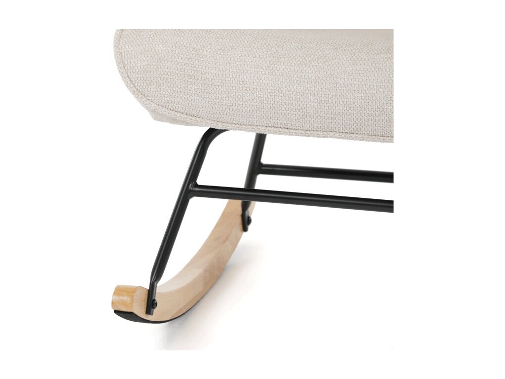 Houpací křeslo s béžovým čalouněním z prémiové látky nabízí pohodlné posezení s jemnou texturou, která je příjemná na dotek a snadno se udržuje. Sedák a opěradlo jsou ergonomicky tvarované a doplněné o pevné područky pro maximální komfort. Stabilní nohy jsou vyrobeny z kombinace černého kovu a masivního kaučukovníku, což zajišťuje pevnost a dlouhou životnost. Houpací mechanismus umožňuje plynulé a tiché houpání, které přispívá k relaxaci. Křeslo je vhodné do moderních i klasických interiérů, jeho rozměry a nosnost odpovídají běžným standardům pro pohodlné sezení.