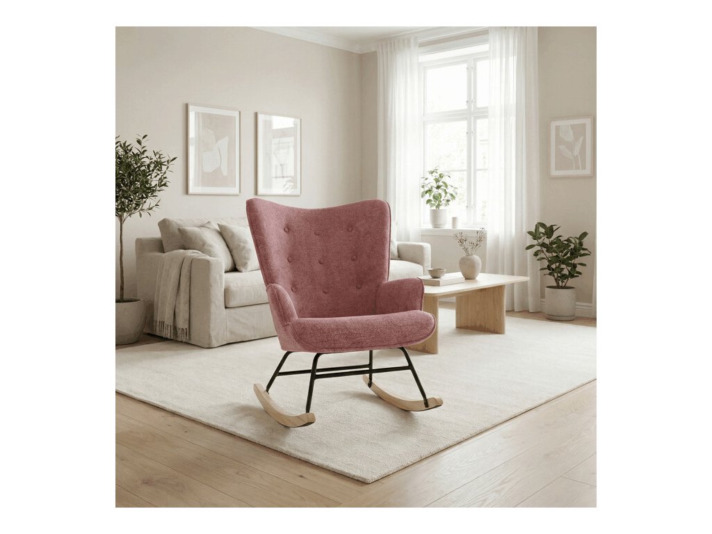 Houpací křeslo s označením AK-373 PINK2 nabízí kombinaci komfortu a stylu díky svému designu a kvalitním materiálům. Sedací část je potažena prémiovou růžovou látkou, která je příjemná na dotek a navržena pro dlouhou životnost. Područky zajišťují pohodlnou oporu při sezení, zatímco pevná podnož z černého kovu je doplněna o houpací lišty z masivního kaučukovníku, které umožňují plynulé a tiché houpání. Konstrukce křesla je stabilní a ergonomicky tvarovaná pro maximální relaxaci. Tento model není otočný ani rozkládací, jeho nosnost a rozměry jsou přizpůsobeny běžnému užívání v domácím i komerčním prostředí.