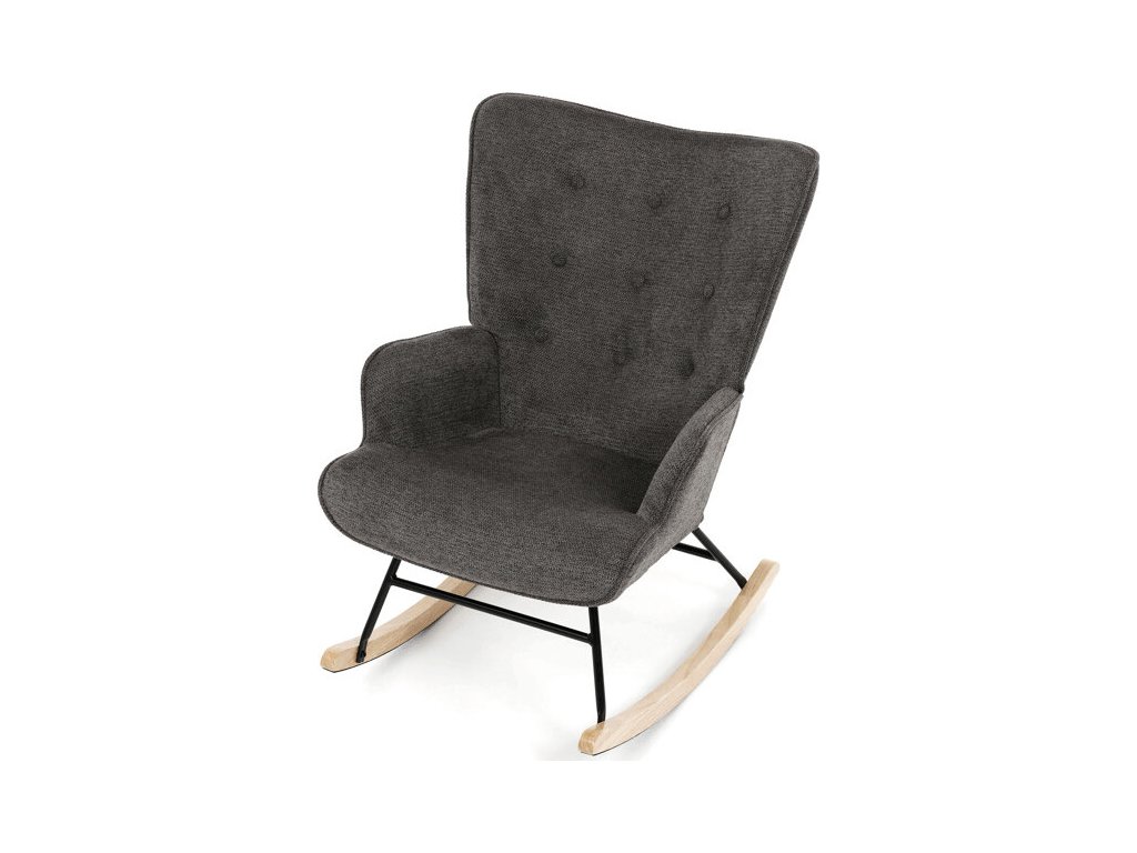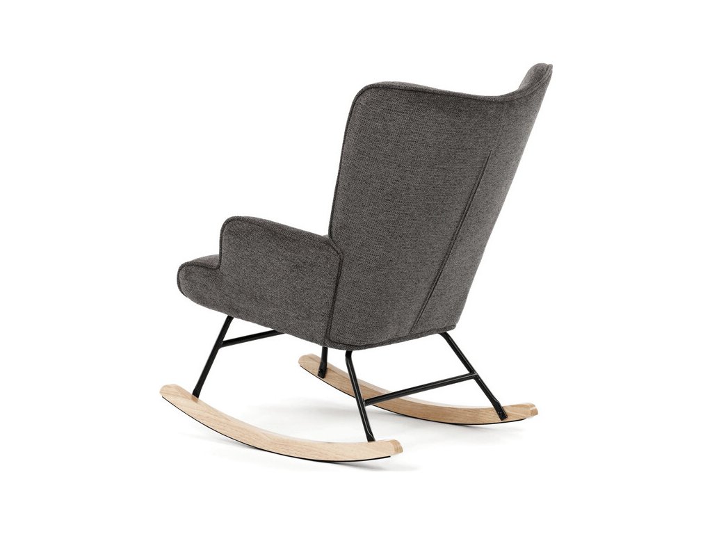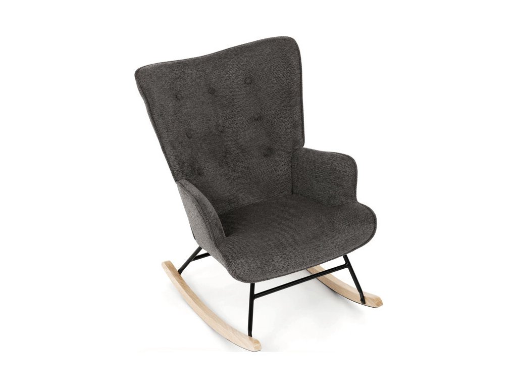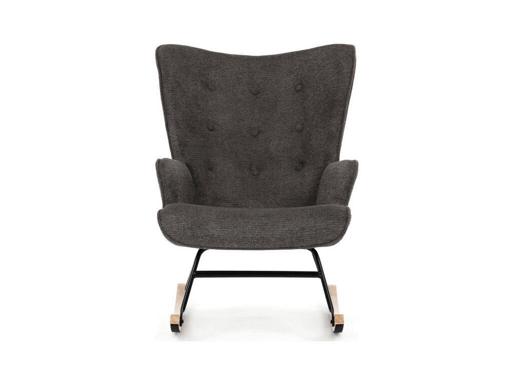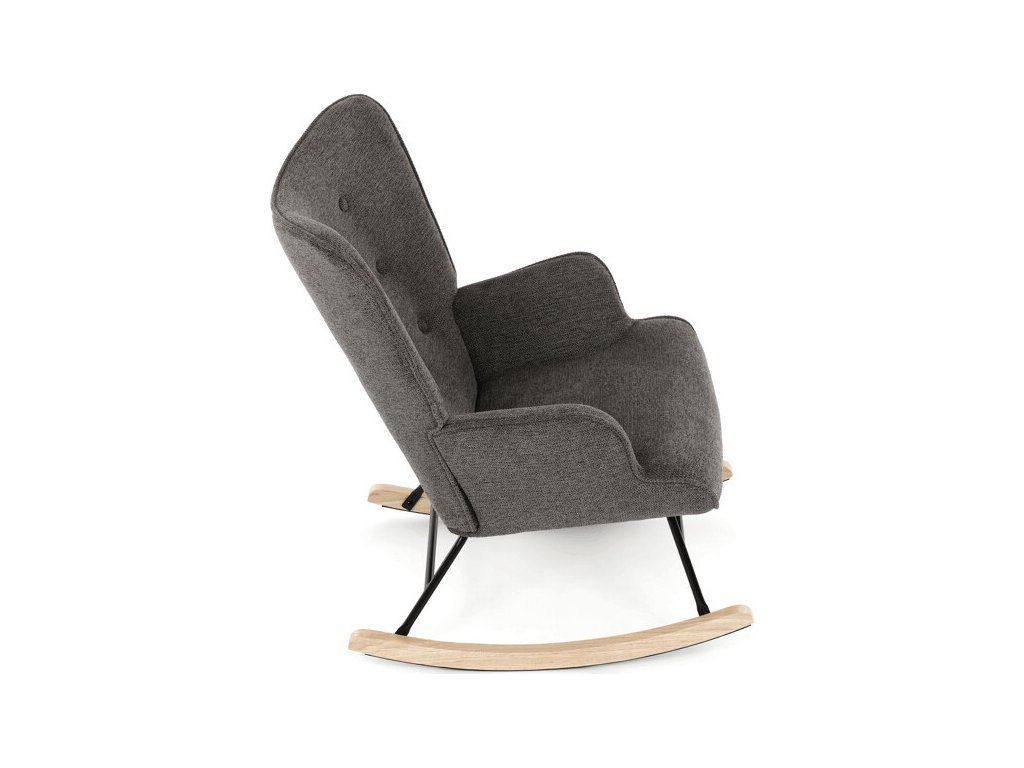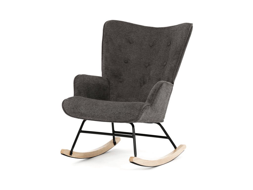 Houpací křeslo v šedé barvě je potažené prémiovou látkou, která nabízí příjemný povrch a snadnou údržbu. Sedák a opěradlo jsou ergonomicky tvarované s decentním prošitím, které dodává křeslu elegantní vzhled. Pevné nohy jsou vyrobeny z kombinace černého kovu a masivního kaučukovníku, což zajišťuje stabilitu a dlouhou životnost. Křeslo je vybaveno houpacím mechanismem, který umožňuje příjemné a plynulé houpání pro relaxaci. Područky jsou pevné a čalouněné stejnou látkou jako sedák, což zvyšuje komfort při sezení.