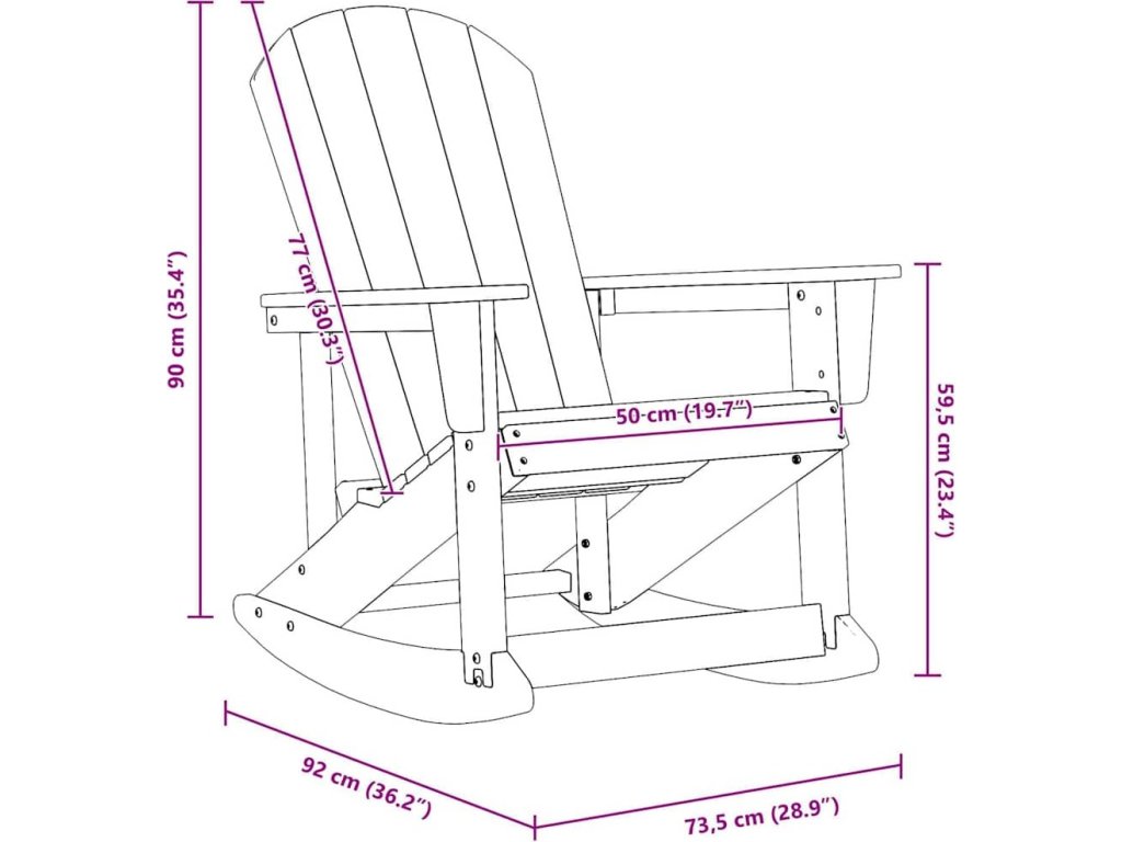 - Složení z polyetylenu: Vyrobena z odolného HDPE, tato Adirondack rocker židle zvládne slunce i déšť, takže vám vydrží roky. Její robustní konstrukce zaručuje kvalitu a dlouhou životnost.