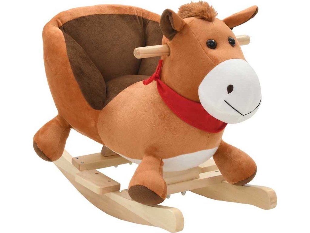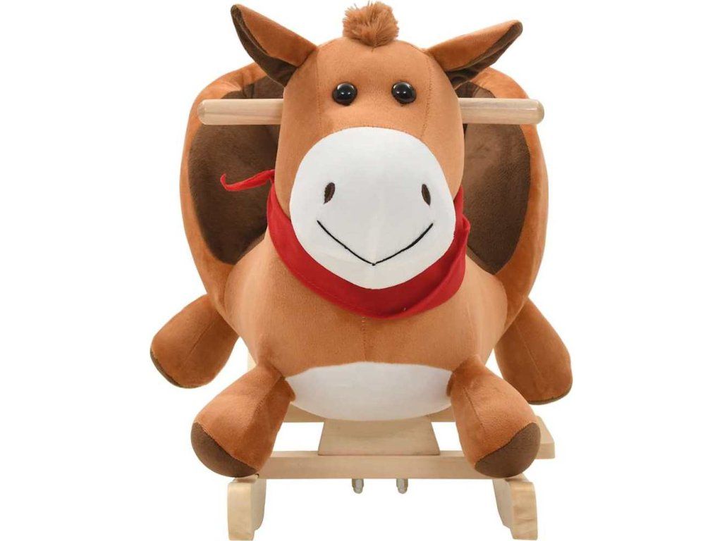 Houpací kůň s opěradlem plyš 60 x 32 x 50 cm hnědý [80221]