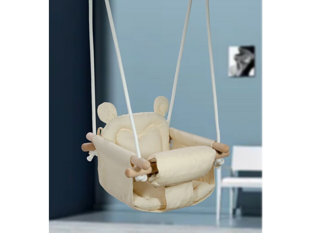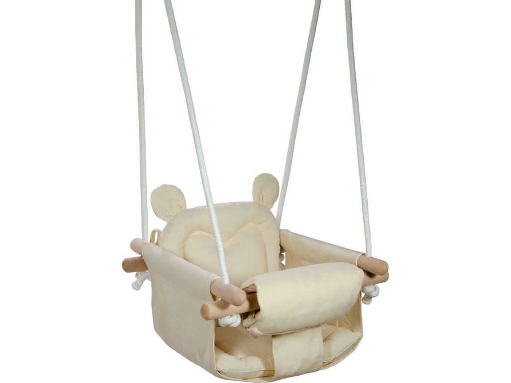 Houpačka z bukového dřeva perfektně doplní vybavení každé zahrady, pergoly, terasy i dětského pokoje. Sedátko je vyrobené ze 100% bavlny, pro co největší pohodlí.