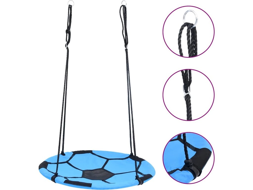 Tato houpačka na strom je vyrobena z ocelového rámu pokrytého polstrováním z měkké pěny, díky čemuž je robustní a pohodlná. Sedačka ve fotbalovém provedení je vyrobena z voděodolné textilie Oxford odolné proti opotřebení, která má lepší nosnost. Každé nastavitelné závěsné lano má spojku pro pevné spojení houpačky, zatímco čtyři body závěsu zajišťují stejnou tažnou sílu pro udržení rovnováhy a zajištění bezpečnosti.