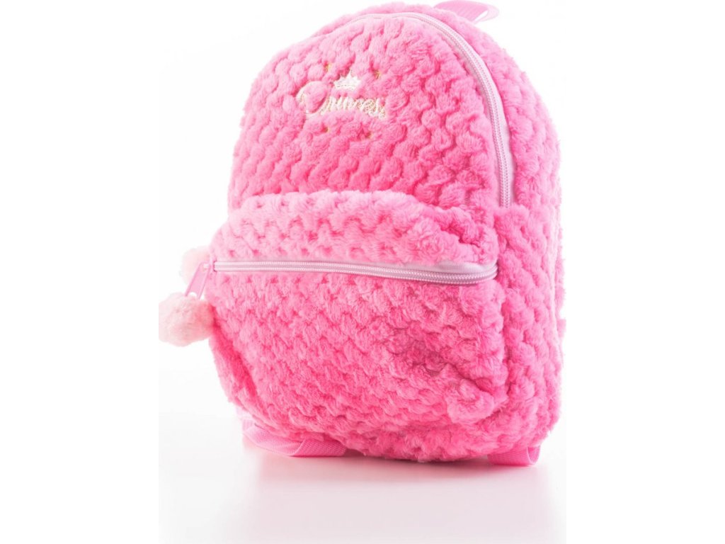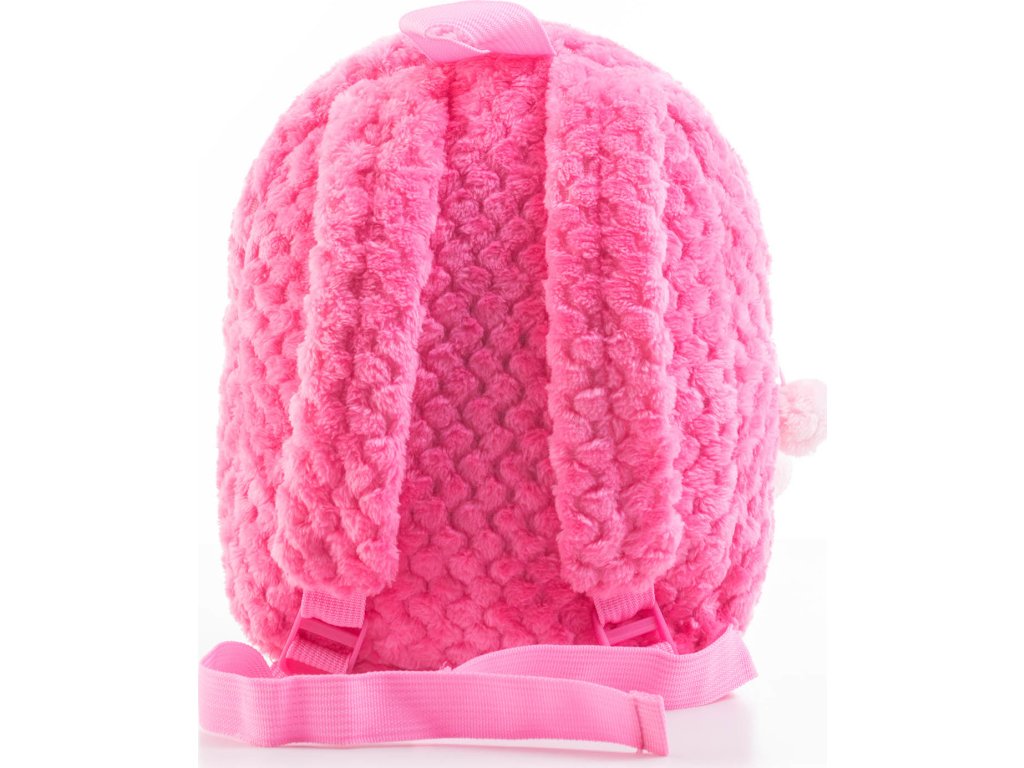 Batůžek má kromě hlavní velké kapsy také malou přední kapsičku, do které si mohou děti uložit všechny své malé poklady. Na zipech obou kapes jsou zavěšeny roztomilé chlupaté bambulky ve světle růžové barvě.