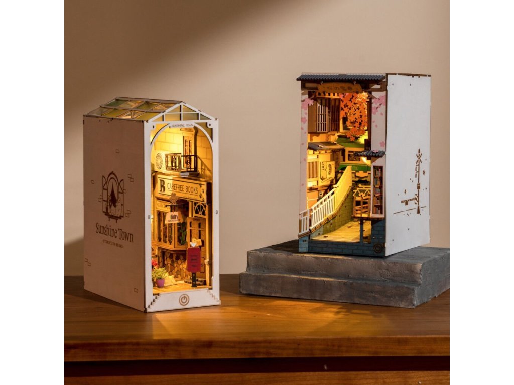 Vyrobte si krásnou zarážku na knihy s motivem Sakurové uličky od značky RoboTime. Ozvláštněte svou poličku na knihy a dodejte jí nový rozměr pomocí jedinečných tematických zákoutí. Nápaditá dioramata jsou plná kouzelných detailů dokreslujících podmanivé příběhy. Díky vestavěnému osvětlení a zrcadélku dýchají prostorem s hřejivou atmosférou. Vypravit se jejich prostřednictvím do světa fantazie je tak snadné.