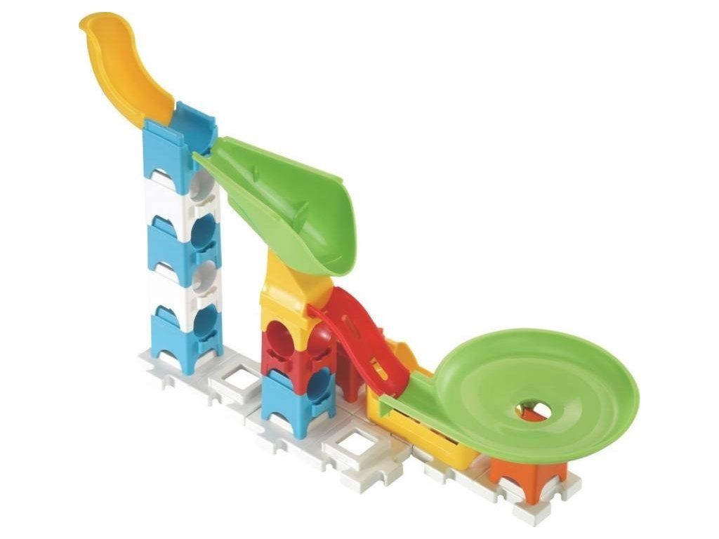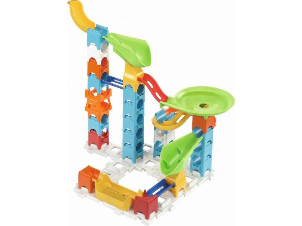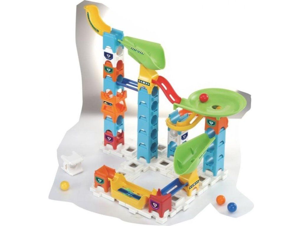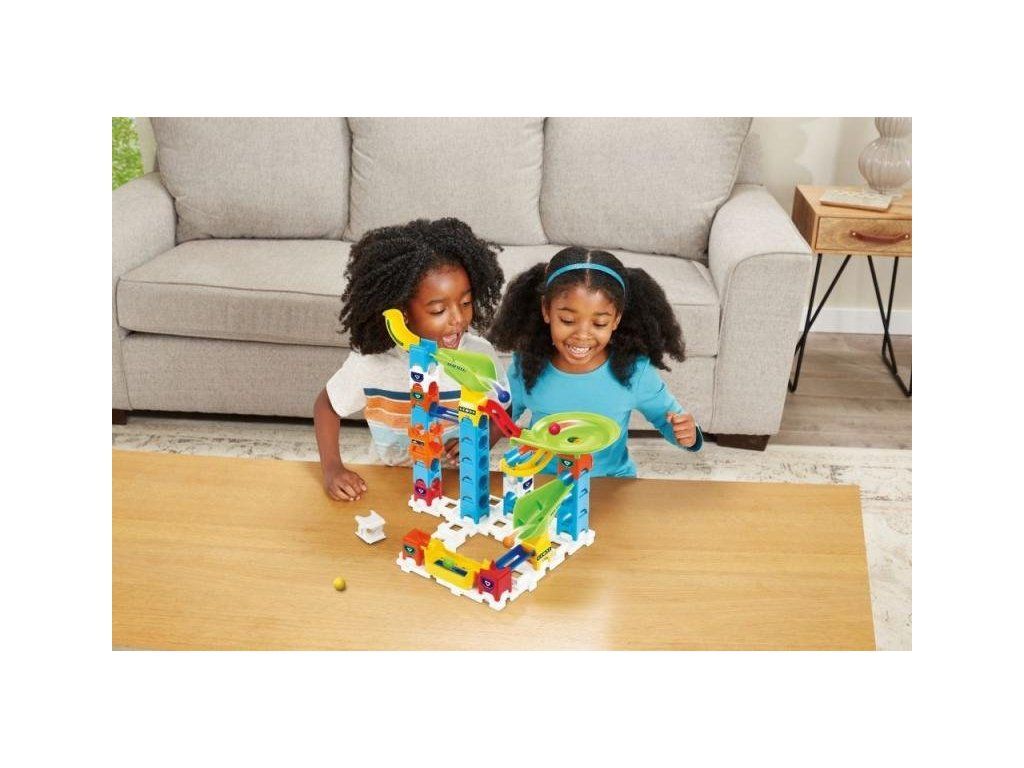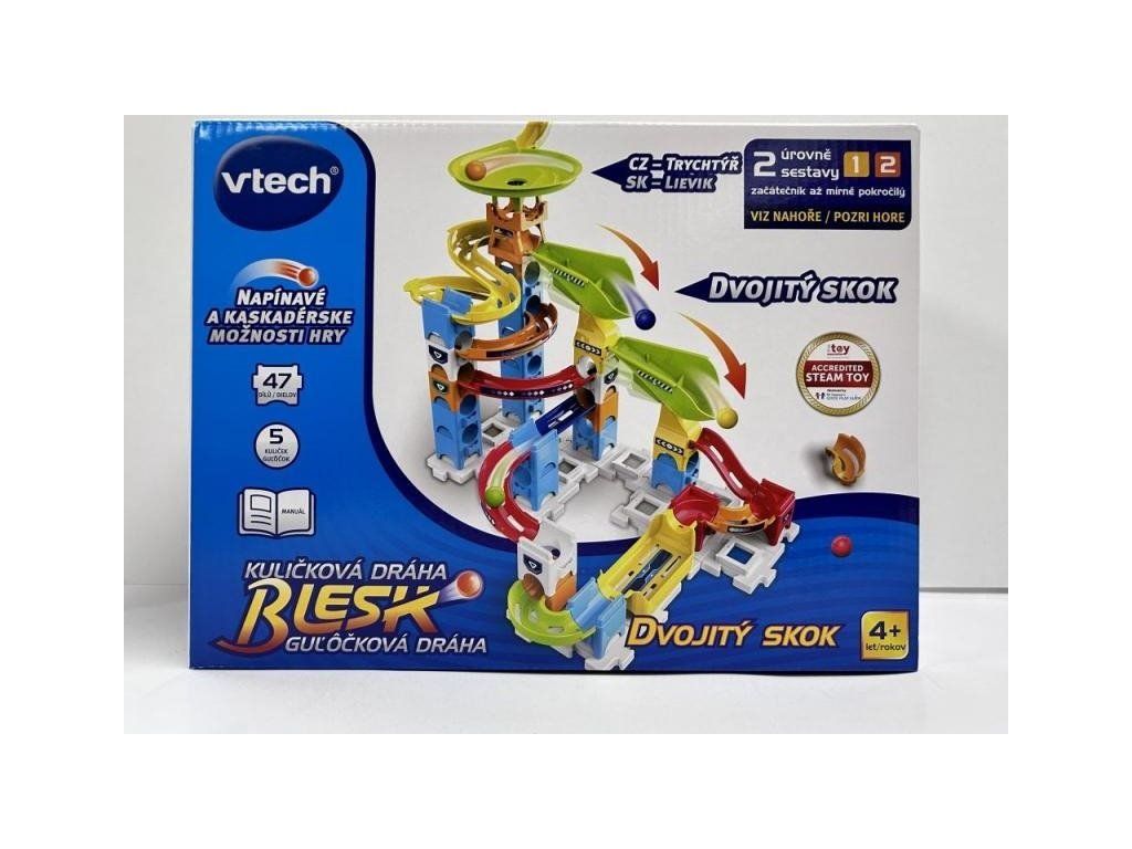 Postavte si s dětmi plastovou kuličkovou dráhu Blesk – Dvojitý skok značky Vtech, se kterou si užijete spoustu zábavy. Sada obsahuje 47 dílků a 5 kuliček. Snadno ji napojíte na ostatní kuličkové dráhy Vtech. Použijte návod k sestavení nebo se nechte unést vlastní představivostí. Stavebnice je určená pro děti od 4 let. Rozvíjí jejich představivost a logické myšlení.