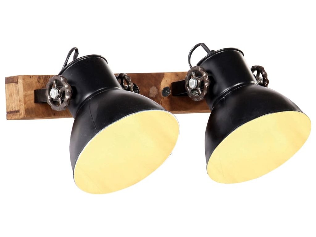 Železná stínidla s černým povrchem doplňuje starovenkovský hnědý odstín masivního mangovníkového dřeva, takže skvěle zapadnou do každého venkovského či industriálního interiéru. Stropní světlo má 2 stínidla, do kterých je třeba namontovat žárovky s paticí E27 o maximálním výkonu 25 wattů. K instalaci si můžete vybírat ze žárovek E27 různých barev, abyste si doma navodili ideální atmosféru klidu a pohody. Tuto lampu lze rovněž připevnit ke stropu.