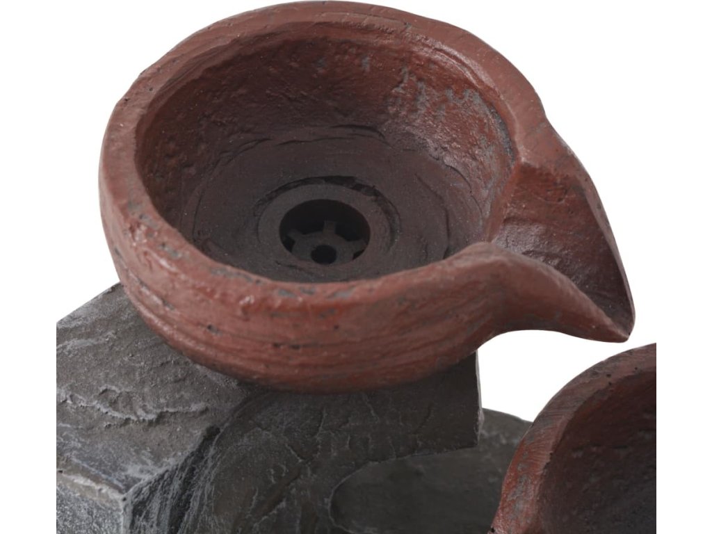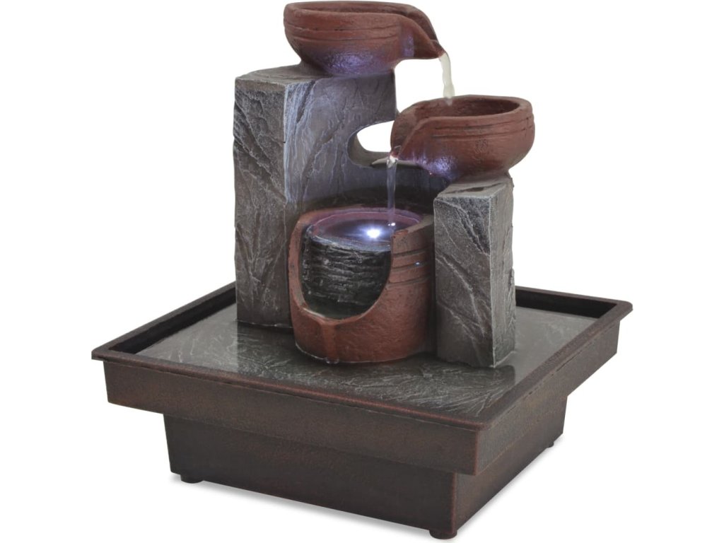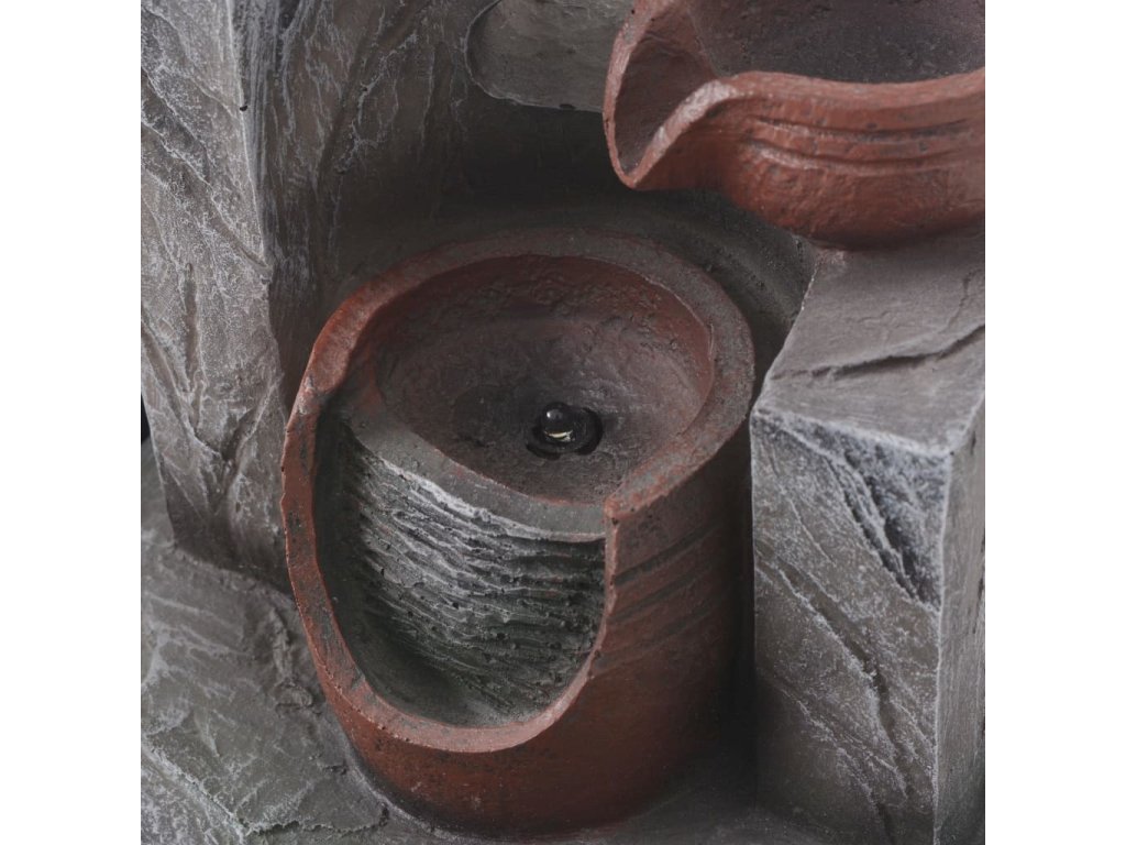 Tato fontánka je vyrobena z polyresinu. Její kaskády jsou osvětleny LED světly, což vytváří ohromující efekt, a to zejména za tmy. Tryská z ní hned několik proudů vody. Jejich zvuk vytváří klidnou, meditativní atmosféru, která je ideální pro relaxaci. Součástí balení je i kvalitní pumpa, díky které je fontána bezpečná a správně funguje.