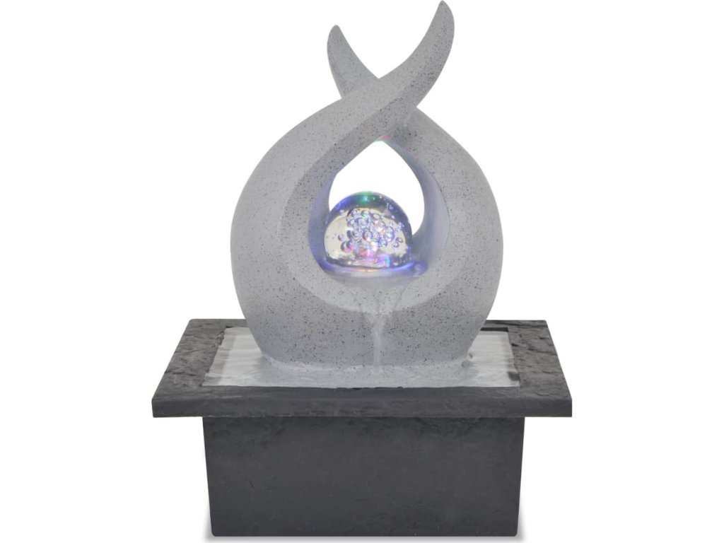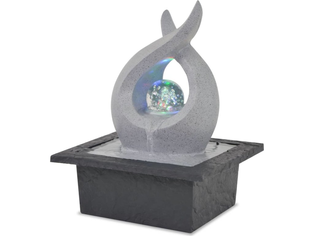 Tato fontánka je vyrobena z polyresinu. Její kaskády jsou osvětleny LED světly, což vytváří ohromující efekt, a to zejména za tmy. Tryská z ní hned několik proudů vody. Jejich zvuk vytváří klidnou, meditativní atmosféru, která je ideální pro relaxaci. Součástí balení je i kvalitní pumpa, díky které je fontána bezpečná a správně funguje.