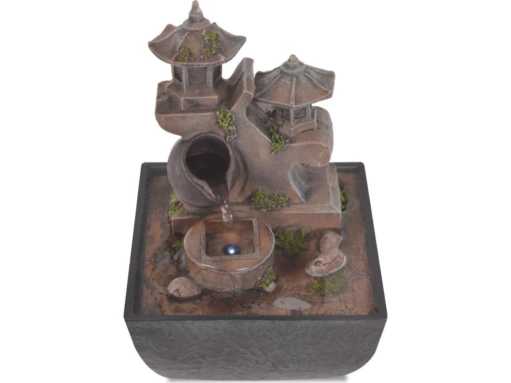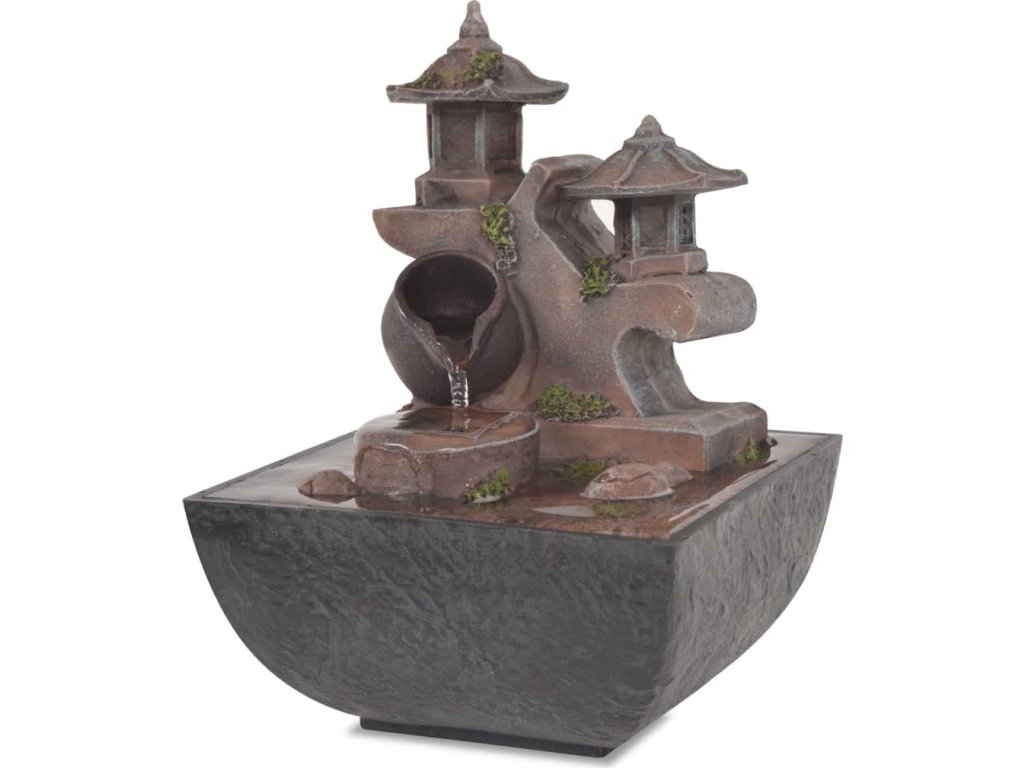 Tato fontánka je vyrobena z polyresinu. Její kaskády jsou osvětleny LED světly, což vytváří ohromující efekt, a to zejména za tmy. Tryská z ní hned několik proudů vody. Jejich zvuk vytváří klidnou, meditativní atmosféru, která je ideální pro relaxaci. Součástí balení je i kvalitní pumpa, díky které je fontána bezpečná a správně funguje.
