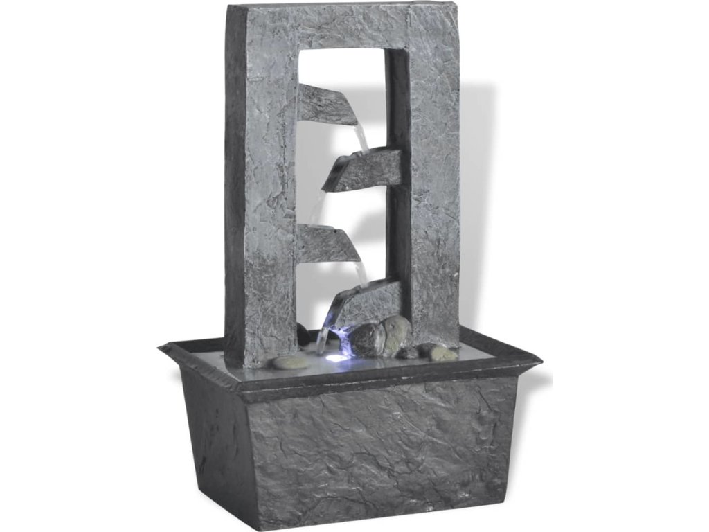 Tento prvek se stékající vodou se bude hodit do každého stylu zařízení. Je osvětlen LED diodami, což vytváří úchvatný vizuální efekt, obzvláště v noci. Tato fontána je vyrobena z polyresinu (syntetická pryskyřice) a je odolná vůči UV záření, což znamená, že bude vypadat stále dobře a uchovávat si svou barvu, i když ji umístíte na přímé sluneční světlo. Několik pramínků a uklidňující zvuk tekoucí vody navozuje relaxační a meditativní atmosféru. Přiložené vysoce kvalitní čerpadlo zajišťuje bezpečné a spolehlivé používání.