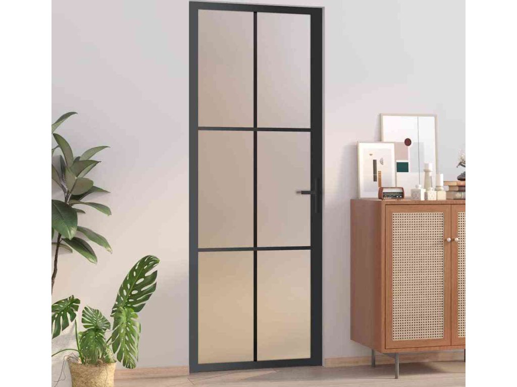 Interiérové dveře 76 x 201,5 cm bílé ESG sklo a hliník [350556]