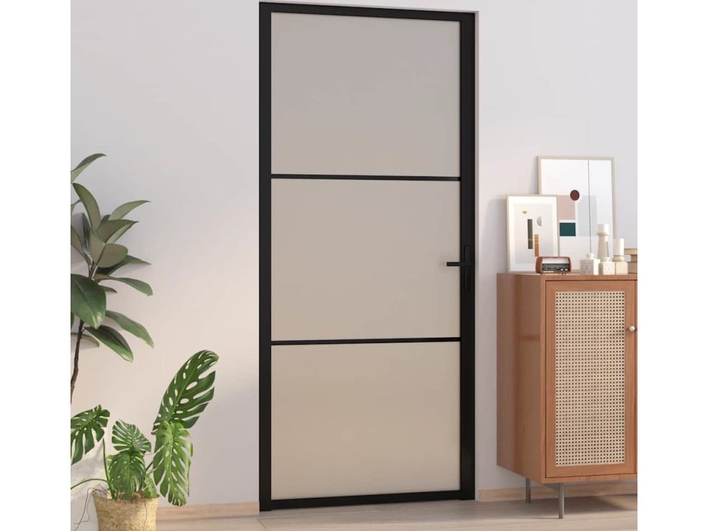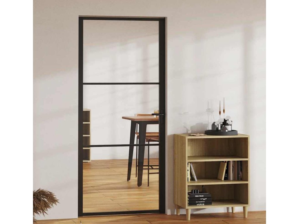 Interiérové dveře 93 x 201,5 cm černé ESG sklo a hliník [350554]