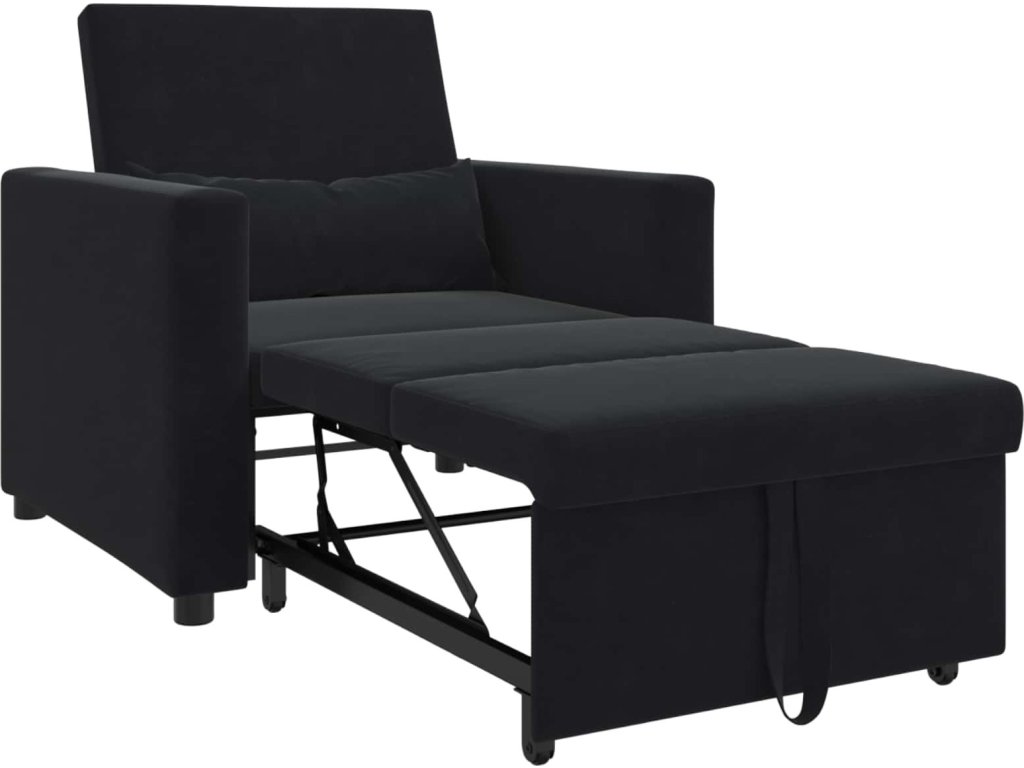 Rozkládací pohovka - jednolůžková Černá 90 x 165 x 87 cm samet [42002703]