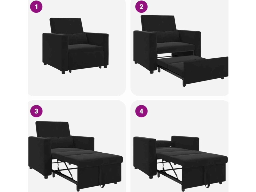 Toto 3-v-1 konvertibilní pohovkové lůžko dokonale spojuje všestrannost a pohodlí. Moderní design se hodí do každého obývacího pokoje. Je to sezení, křeslo i postel v jednom, s jednoduchými konturami, co zapadají do jakéhokoli interiéru. Sametový materiál je na dotek luxusní a poskytuje příjemný komfort, láká vás k relaxaci, ať už si chcete užít příjemný večer nebo hostit návštěvu.