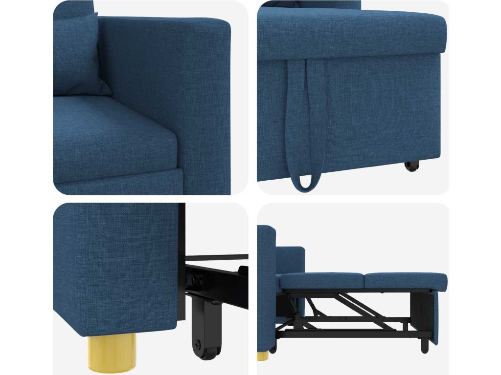 Tato 3-v-1 pohovka spojuje styl a funkčnost, a je tak ideální pro moderní byty. Elegance a praktické vlastnosti ji činí výbornou volbou do malých prostorů. Je navržena tak, aby vynikla v jakékoliv místnosti, přičemž poskytuje variabilitu díky přechodnému designu, a stává se stylovým srdcem vašeho domova. S atraktivním povrchem a pohodlným sezením vás zve k odpočinku a zároveň si zachovává elegantní vzhled. Perfektní pro ty, co potřebují flexibilní nábytek, který snadno změní formu z křesla na postel bez obětí na styl nebo pohodlí.
