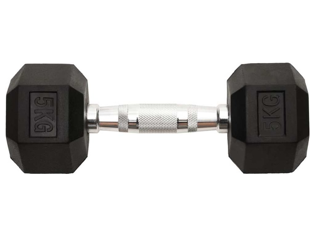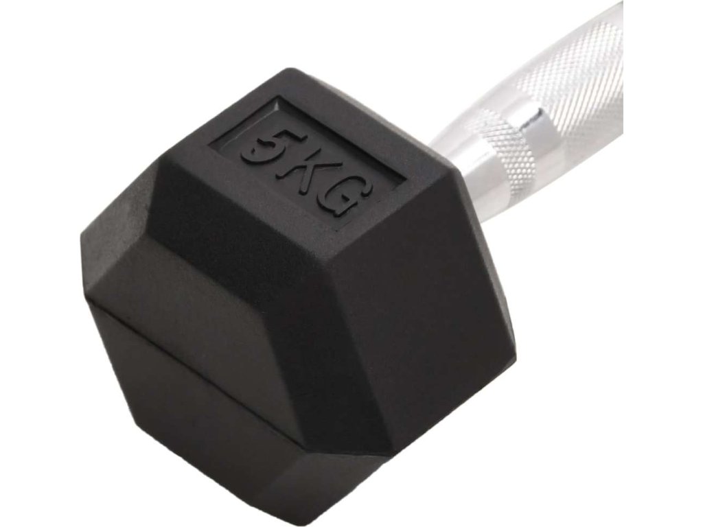 - Pohodlná rukojeť: Šestihranná činka má rýhovanou rukojeť pro lepší stabilitu a bezpečnost během tréninku.