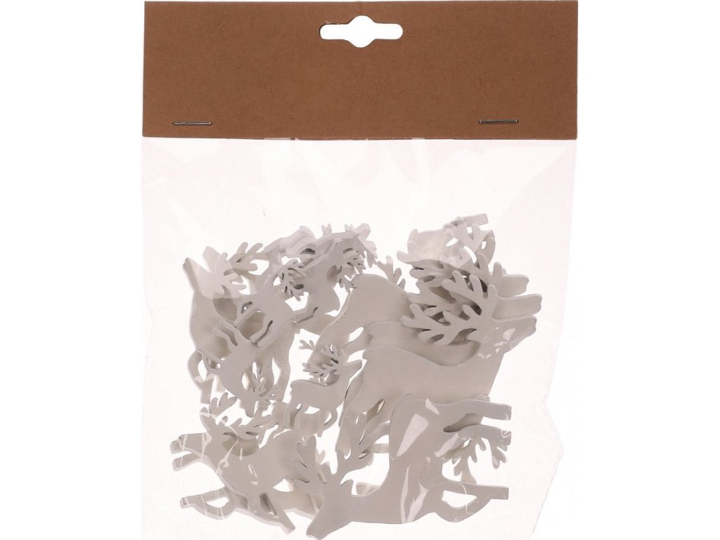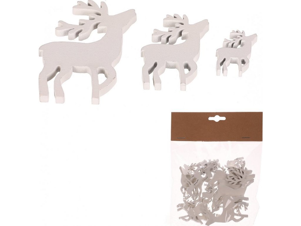 Jelen - dřevěná ozdoba, bílá, mix 3 vel., cena za balení (18 ks) OC4069 WT