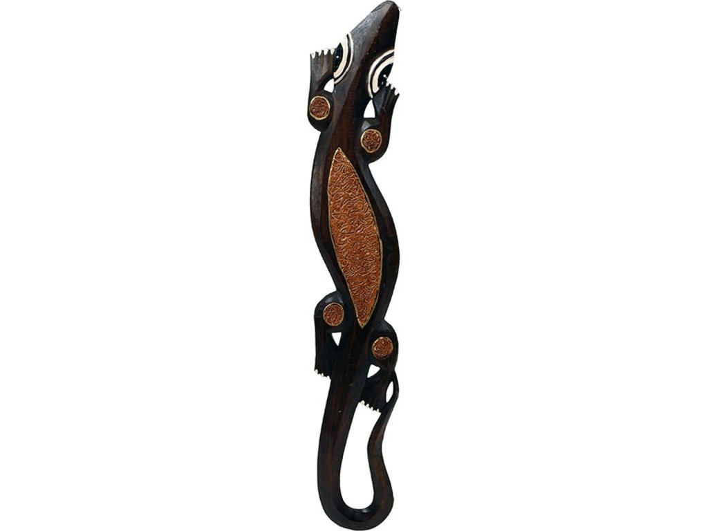 Tato dřevěná nástěnná dekorace ve tvaru ještěrky, vyrobená z mixu dřeva, přináší do vašeho domova exotický styl. Ideální pro oživení stěn v interiéru, dodá prostoru jedinečný a přírodní vzhled s nádechem vzdálených krajin a kultur.