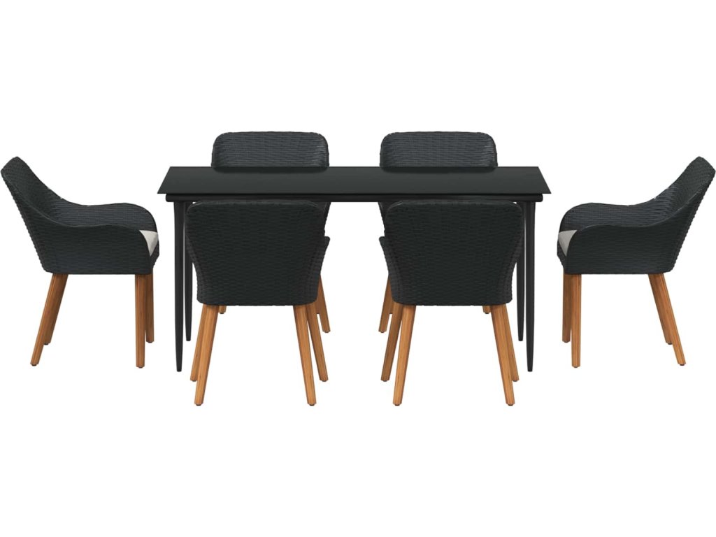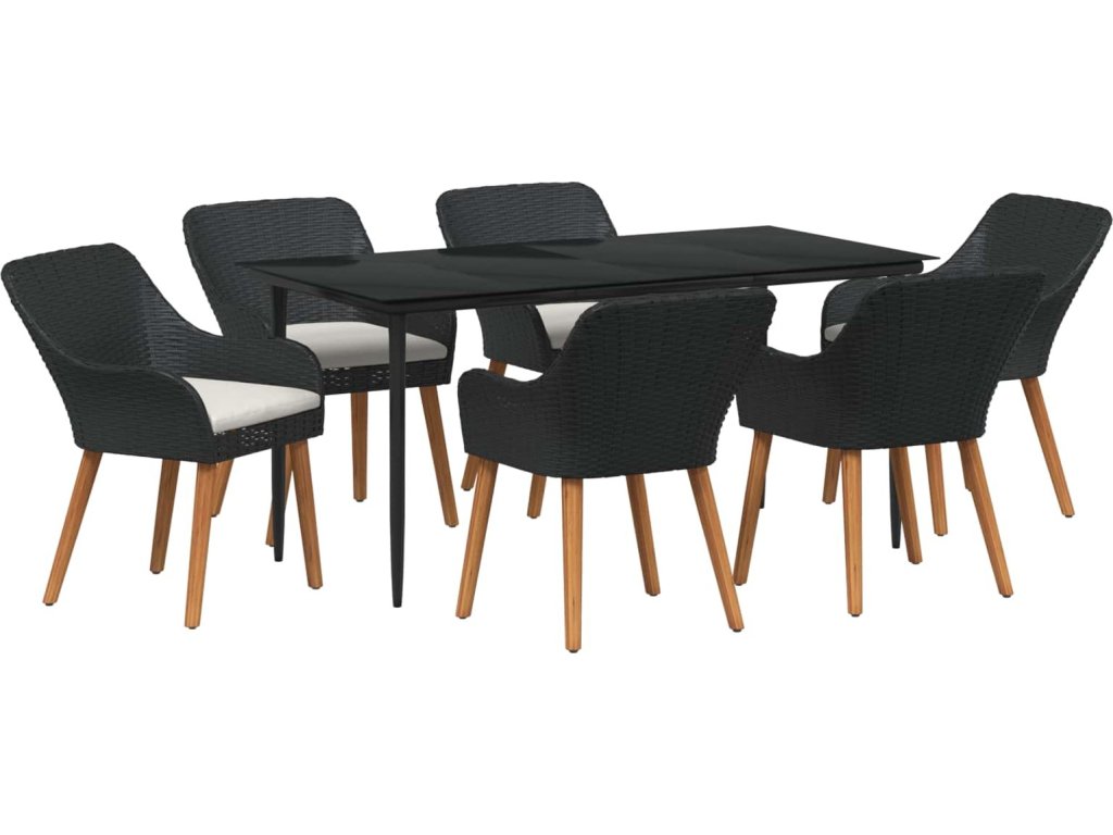 Zahradní jídelní souprava s polštářem 7 pcs Černá polyratan [3261667]