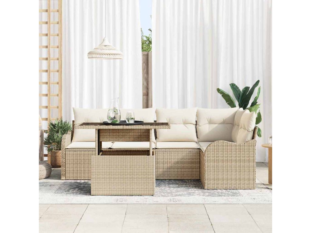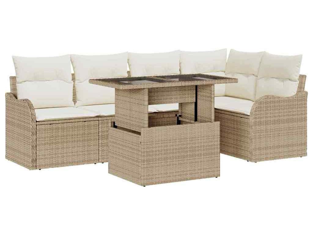Jídelní souprava s polštářem 6 pcs Béžová Poly ratan [3348467]
