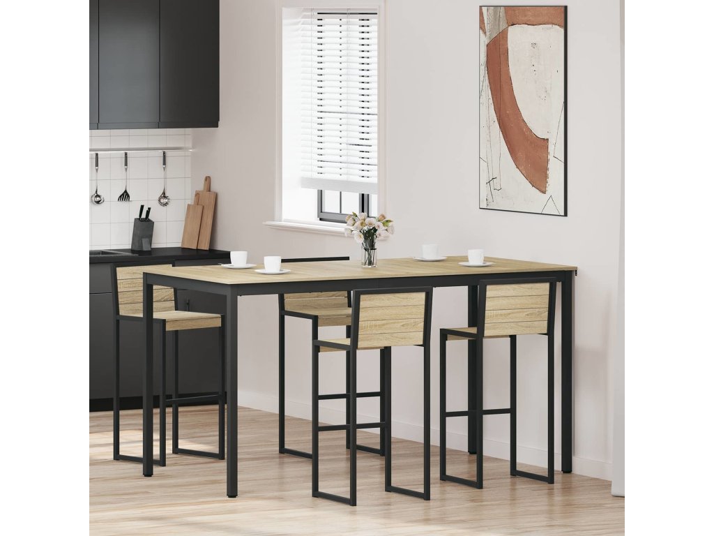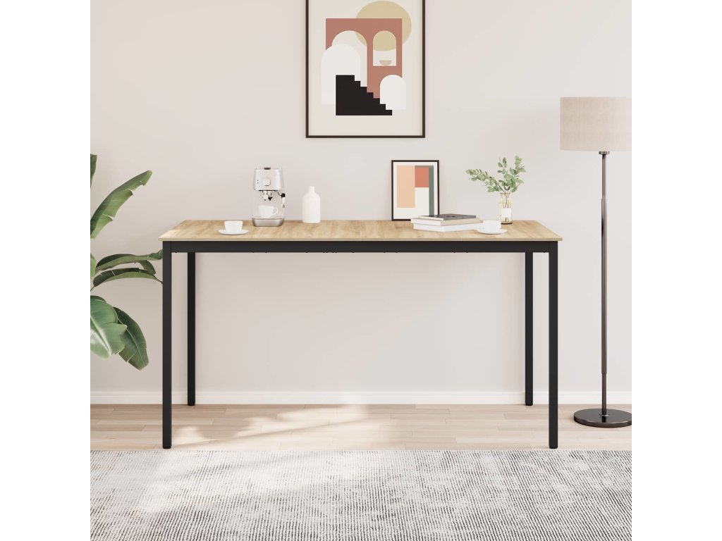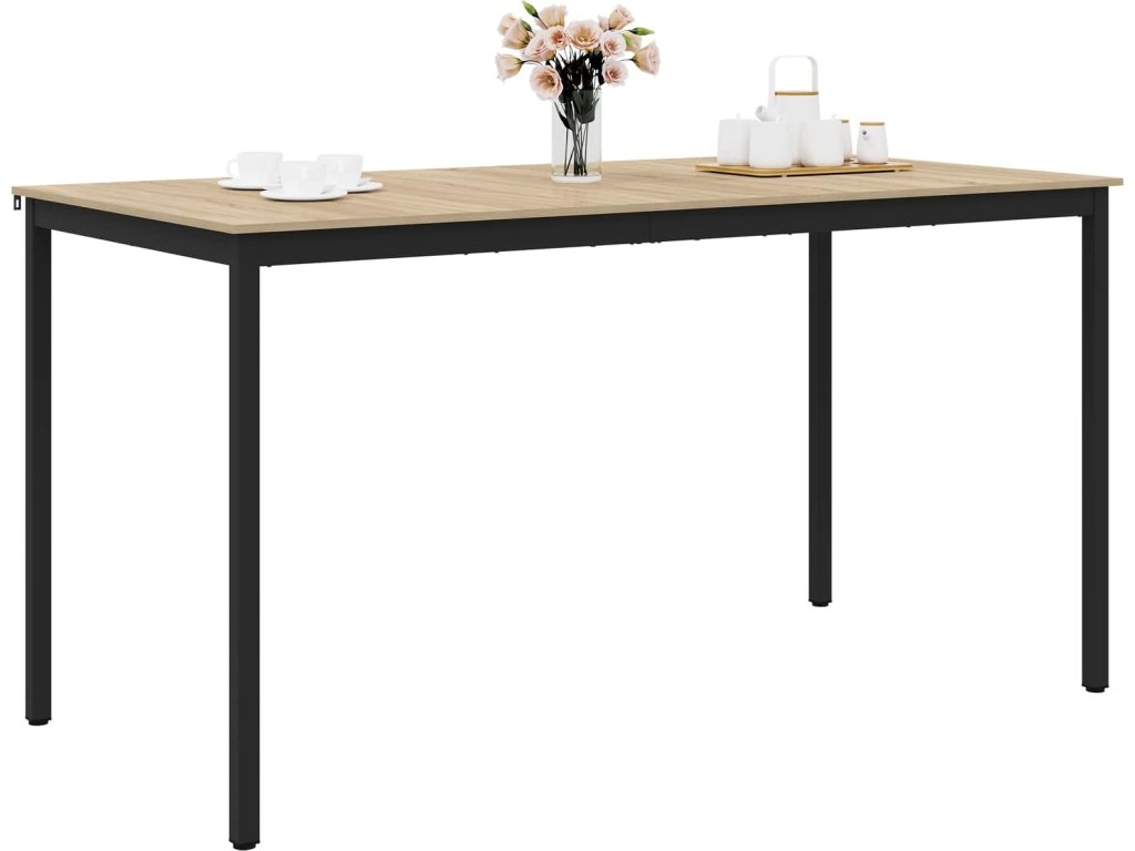 - Pevné materiály: Povrch stolu je z inženýrského dřeva, což zajišťuje odolnost a hezký vzhled. Stabilní kovové nohy a rám mu dodávají jistotu, takže vydrží každý den bez ústupků na elegantním designu.