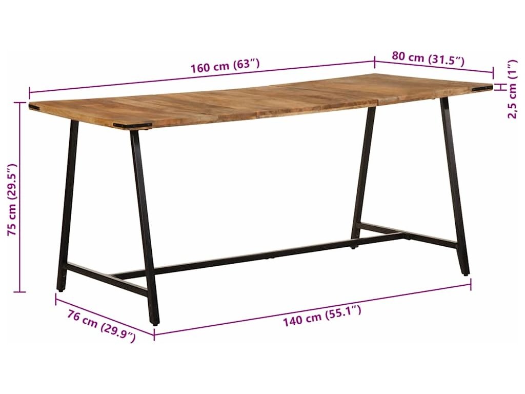 Jídelní stůl 160 x 80 x 75 cm masivní mangovníkové dřevo [373610]