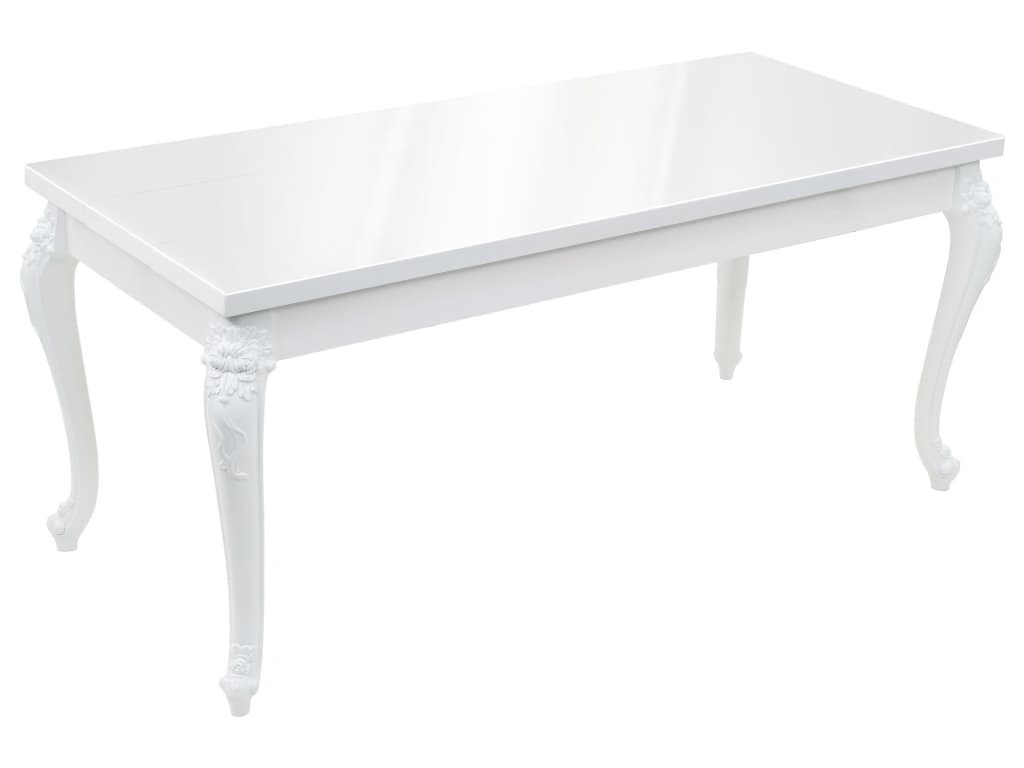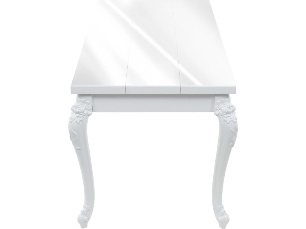 Bílý povrch s vysokým leskem odráží světlo, což přispěje k vašemu požitku ze stolování. Stůl je vyroben z dřevovláknité desky střední hustoty (MDF). Má čtyři robustní nohy z lehkého plastu a jeho sestavení je snadné.