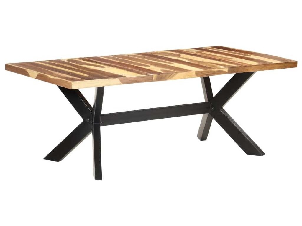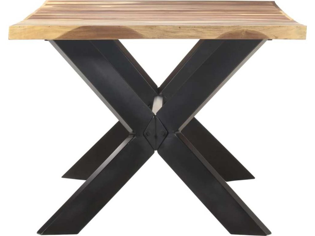 Jídelní stůl je zhotovený z masivní akácie a kaučukovníkového dřeva s medovou povrchovou úpravou. Stůl je celý ručně dělaný a každá fáze jeho výroby je prováděna s mimořádnou péčí, ať už se jedná o leštění, natírání anebo lakování. Ocelové nohy dotvářejí industriální vzhled a spolu s ocelovým křížovým rámem přispívají k robustní konstrukci.