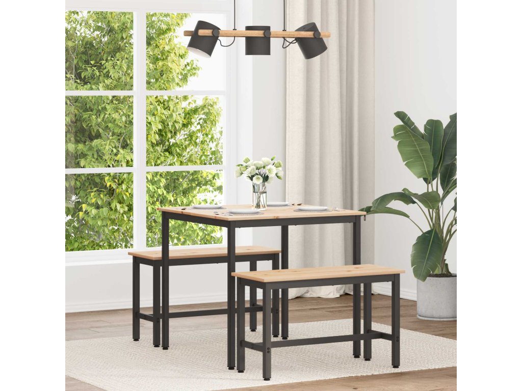 - Kvalitní materiály: Vyrobený hlavně z masivního borového dřeva, tenhle jídelní stůl spojuje sílu a eleganci. Přirozená struktura dřeva přidává moderní prvek a zajišťuje dlouhou trvanlivost.