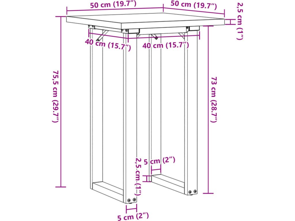 Jídelní stůl s O rámem 50 x 50 x 75,5 cm borové dřevo a ocel [3282735]