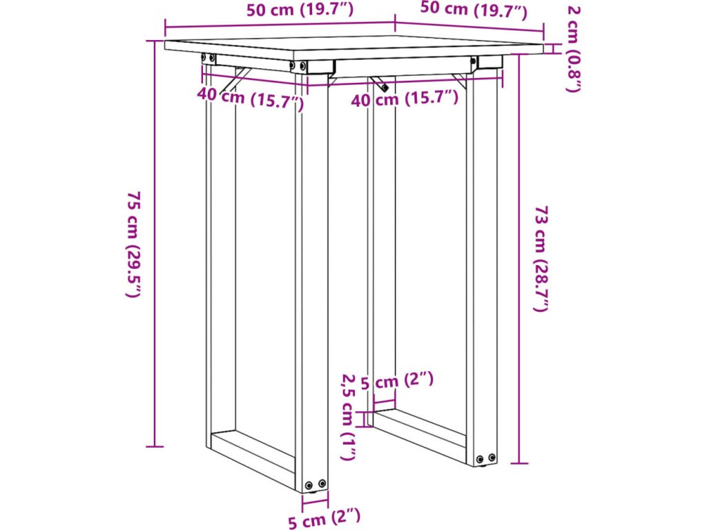 Jídelní stůl s O rámem 50 x 50 x 75 cm borové dřevo a ocel [3282669]