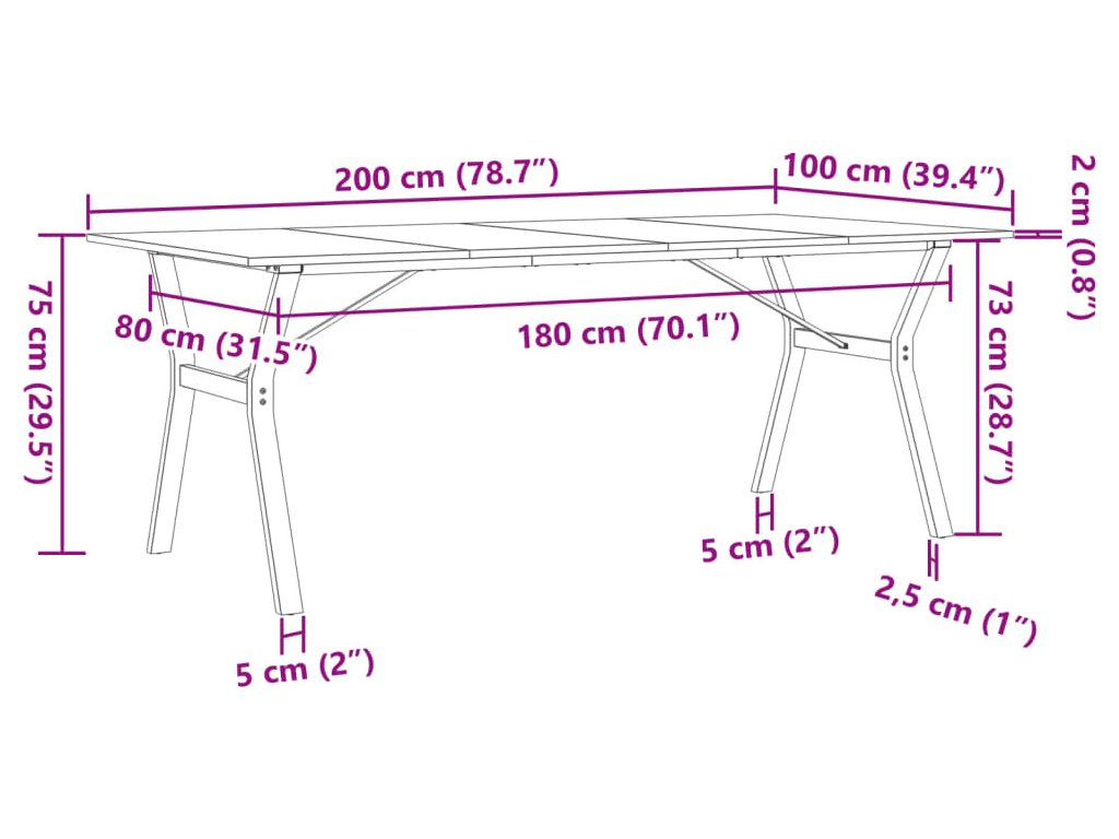 Jídelní stůl s Y rámem 200 x 100 x 75 cm borové dřevo a ocel [3282723]
