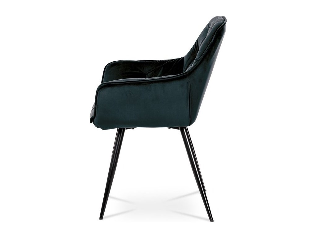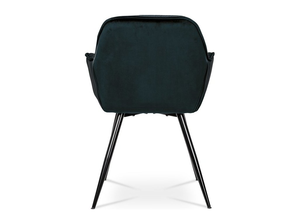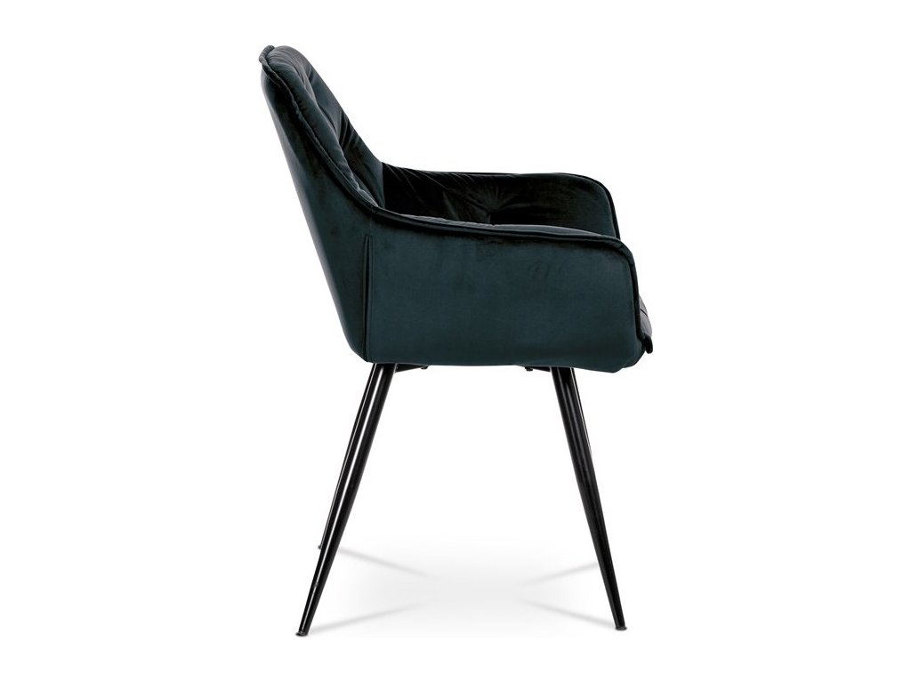 Jídelní židle s označením DCH-421 BK4 nabízí komfortní sezení díky čalounění z modročerné sametové látky, která je příjemná na dotek a snadno se udržuje. Pevná kovová čtyřnohá podnož s černým lakem zajišťuje stabilitu a dlouhou životnost. Designové prošití na opěradle a sedáku podtrhuje moderní vzhled židle, zatímco integrované područky přispívají k pohodlí při delším posezení. Židle není otočná, což podporuje pevnou a stabilní pozici při stolování. Vhodná je zejména do jídelních prostor, kde kombinuje estetiku s funkčností.