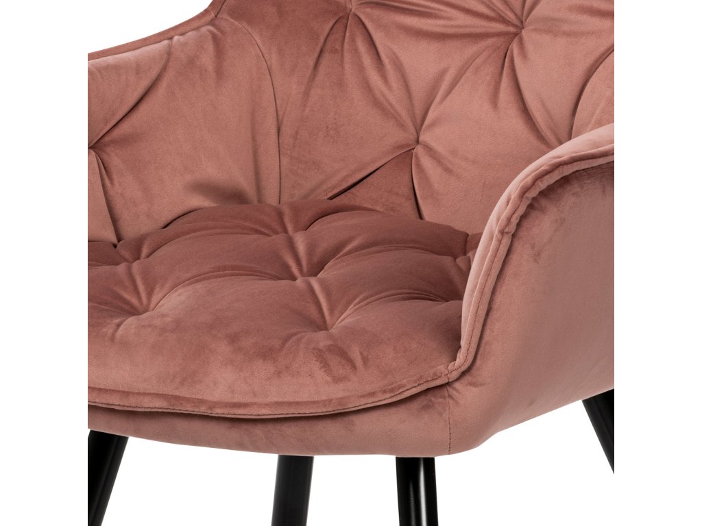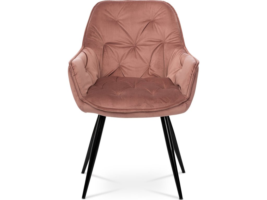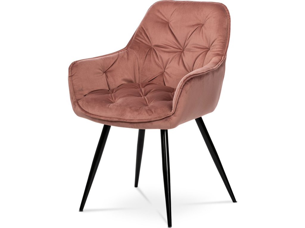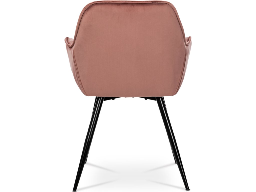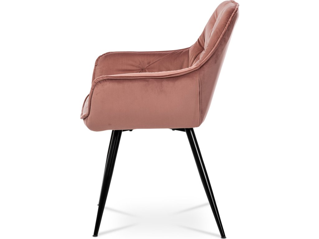 Jídelní židle s označením DCH-421 PINK4 nabízí komfortní sezení díky čalounění z růžové sametové látky, která je příjemná na dotek a snadno se udržuje. Čalouněné opěradlo a sedák jsou zdobeny designovým prošitím, které dodává židli elegantní a moderní vzhled. Pevná čtyřnohá podnož z kovu s černým lakem zajišťuje stabilitu a dlouhou životnost. Židle je vybavena integrovanými područky, které přispívají k pohodlí při sezení. Díky svému designu a barevnému provedení je vhodná do jídelních koutů i moderních interiérů.