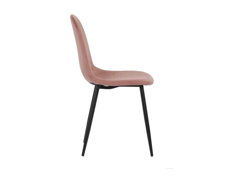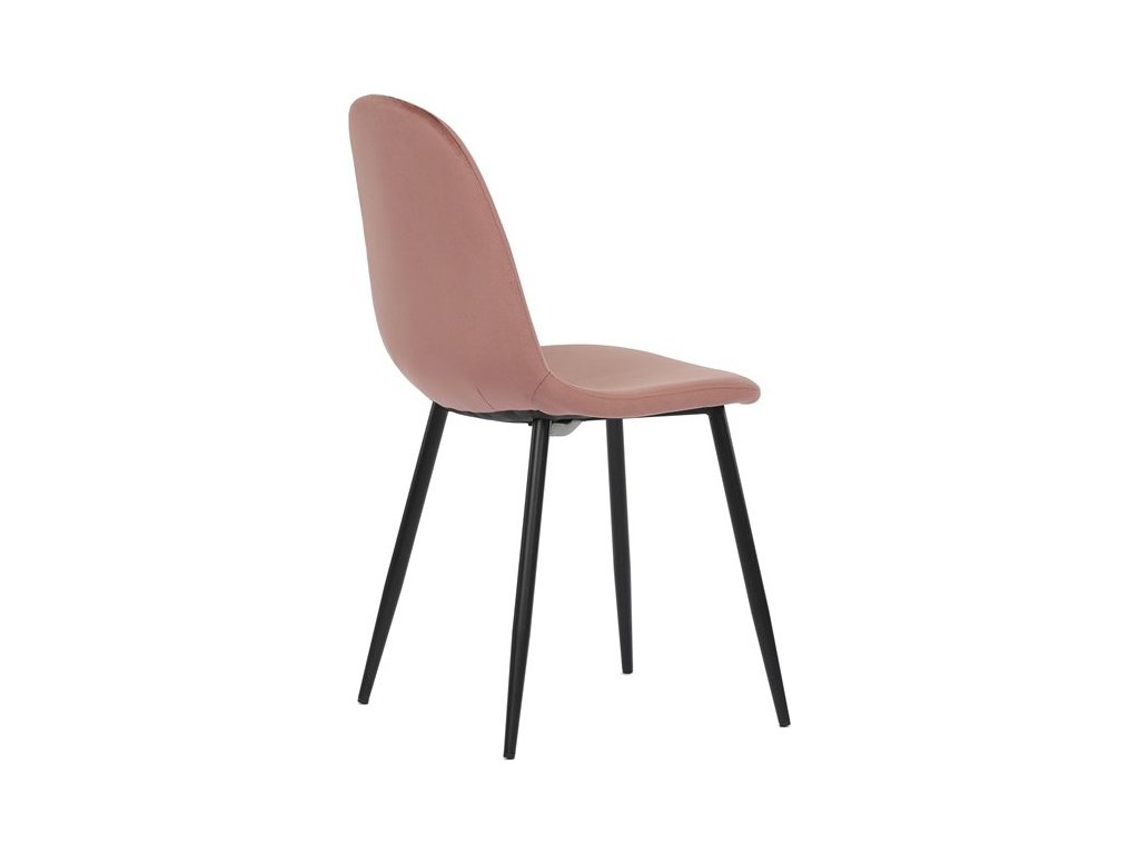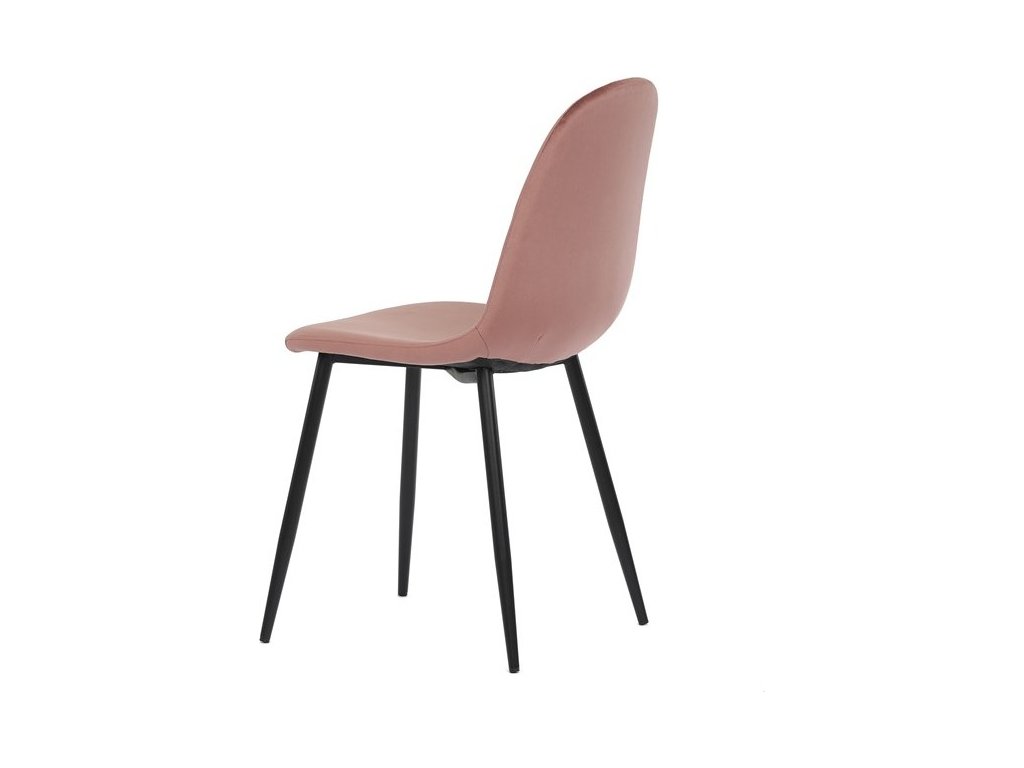 Jídelní židle s označením CT-971 PINK4 nabízí pohodlné sezení díky čalounění z růžového sametu, který působí příjemně na dotek a dodává interiéru jemný barevný akcent. Pevné nohy z černého matného kovu zajišťují stabilitu a dlouhou životnost židle. Ergonomicky tvarované opěradlo podporuje správné držení těla během stolování. Židle nemá područky ani otočný mechanismus, což umožňuje snadné zasunutí pod stůl a úsporu místa. Díky jednoduchému designu a kvalitnímu zpracování je vhodná do moderních i klasických jídelních prostor.
