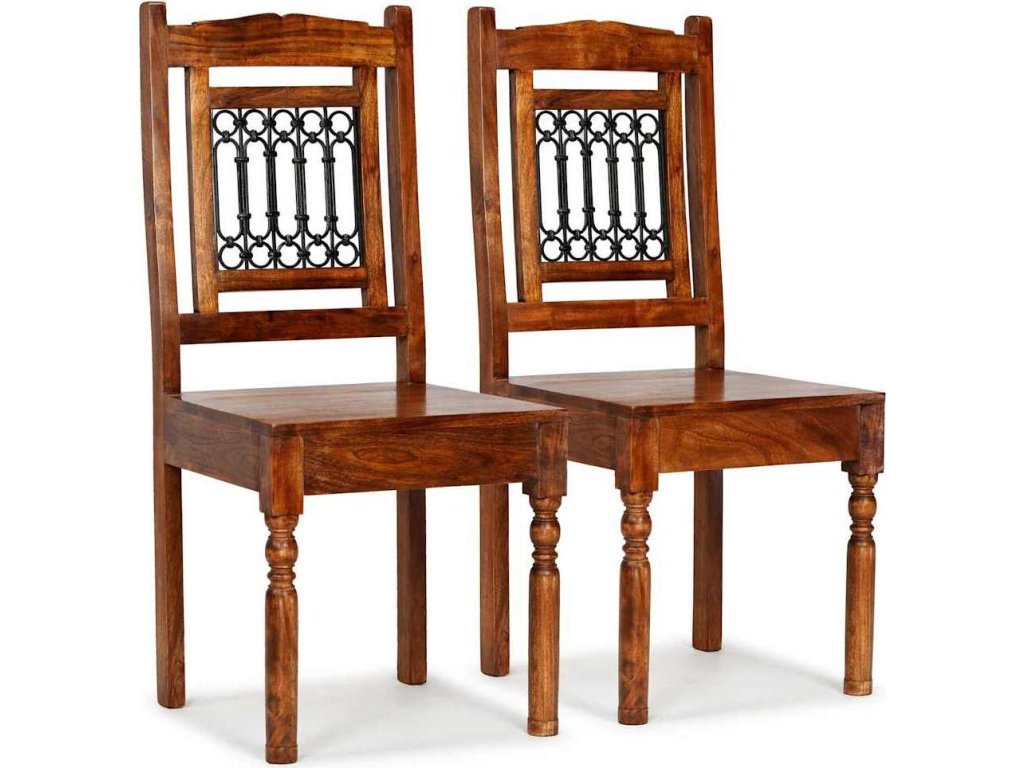 Tato klasicky navržená sada 2 dřevěných jídelních židlí s nádhernými, litinovými ozdobnými detaily dodá vašemu domovu nádech elegance!