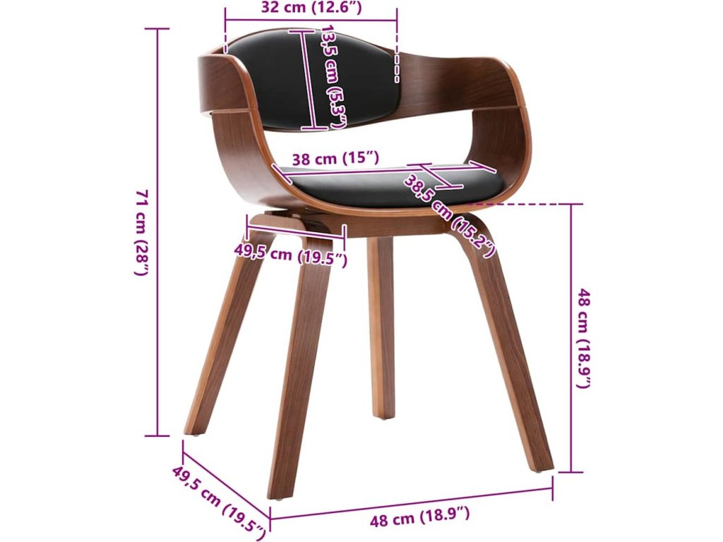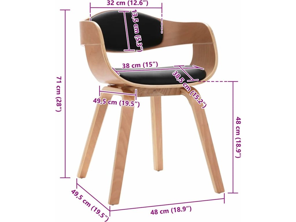 Jídelní židle je potažená umělou kůží a dobře polstrovaná, aby se vám na ní co nejlépe sedělo. Robustní rám z ohýbaného dřeva zdůrazňuje její jedinečnou krásu a styl. Vzhledem k ergonomickému tvaru židle se na ní můžete pohodlně uvelebit i na celé hodiny. Jedná se o perfektní volbu ke stolování, povídání, čtení, sledování televize nebo jen tak k odpočinku.