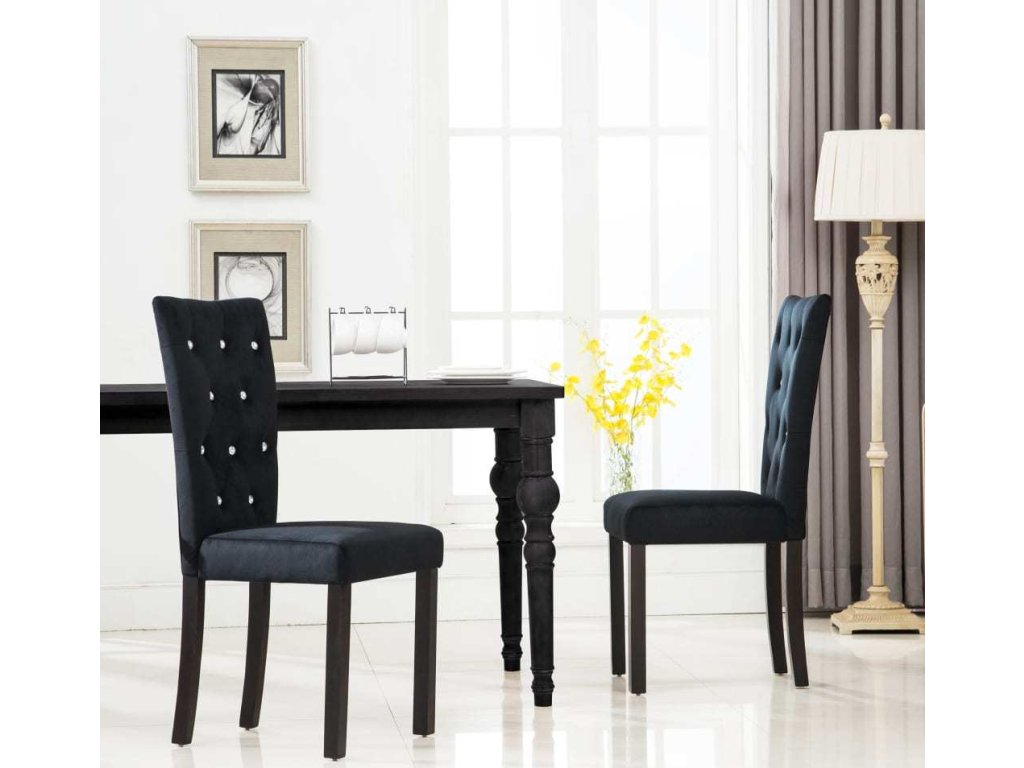 Dopřejte svému interiéru nádech elegance s naší sadou sametových jídelních židlí. Židle mají všívané krystaly, což jim dává okouzlující vzhled.